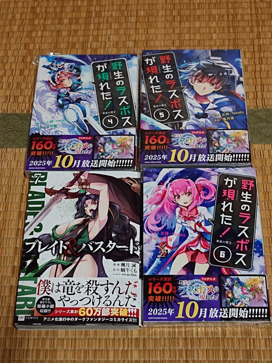 先週買った本:野生のラスボスが現れた!4~6、ブレード&バスタード7、DIME12月号、魔法使いの嫁23、月刊アーマーモデリング、建築知識、まんがタイムきららMAX。 野生のラスボス1~3は、前の週にお得な3冊セットで購入してましたわ。 DIME 読んでないやんオレ(^^; pic.x.com/mwRNAT2Mym