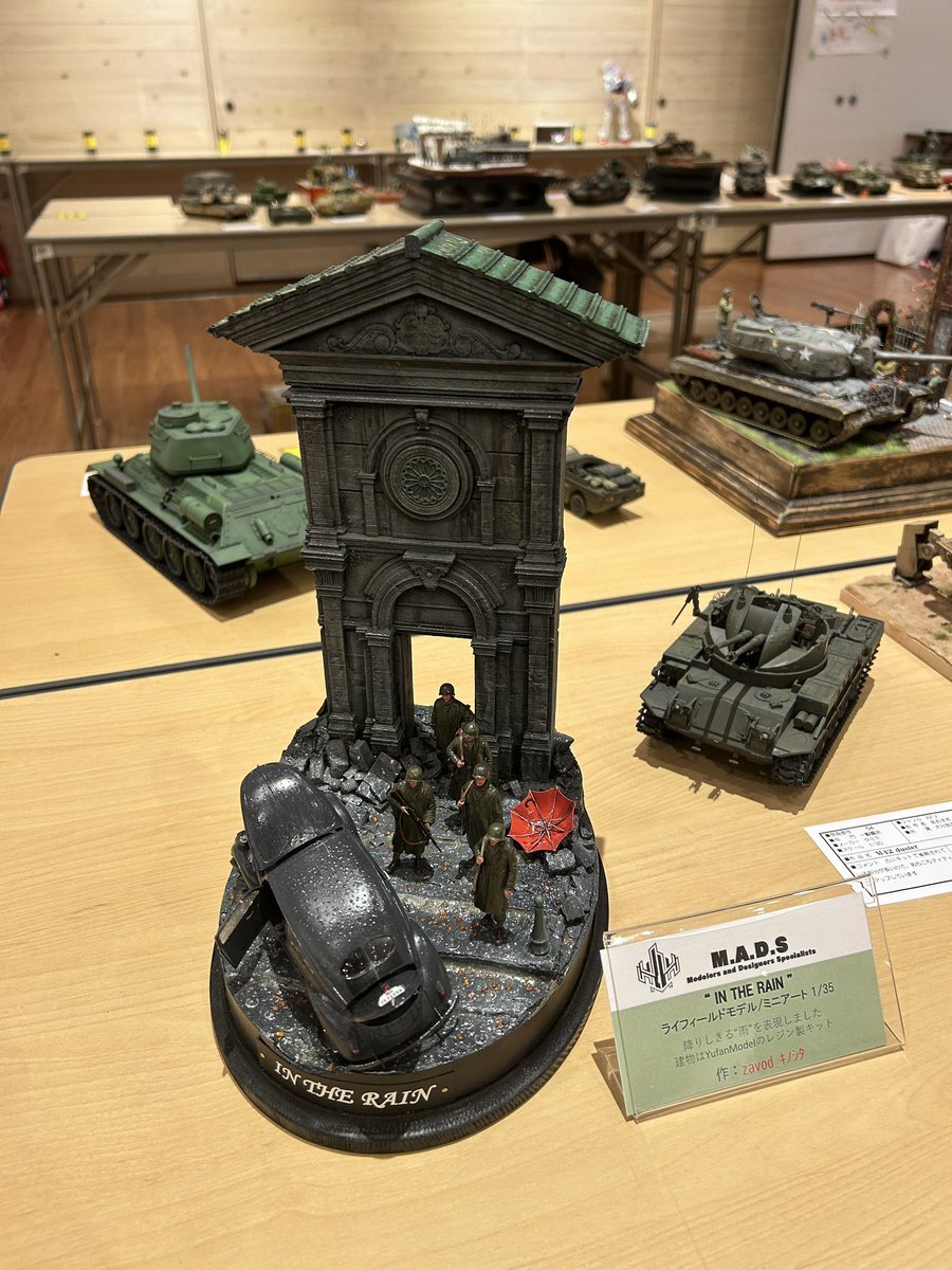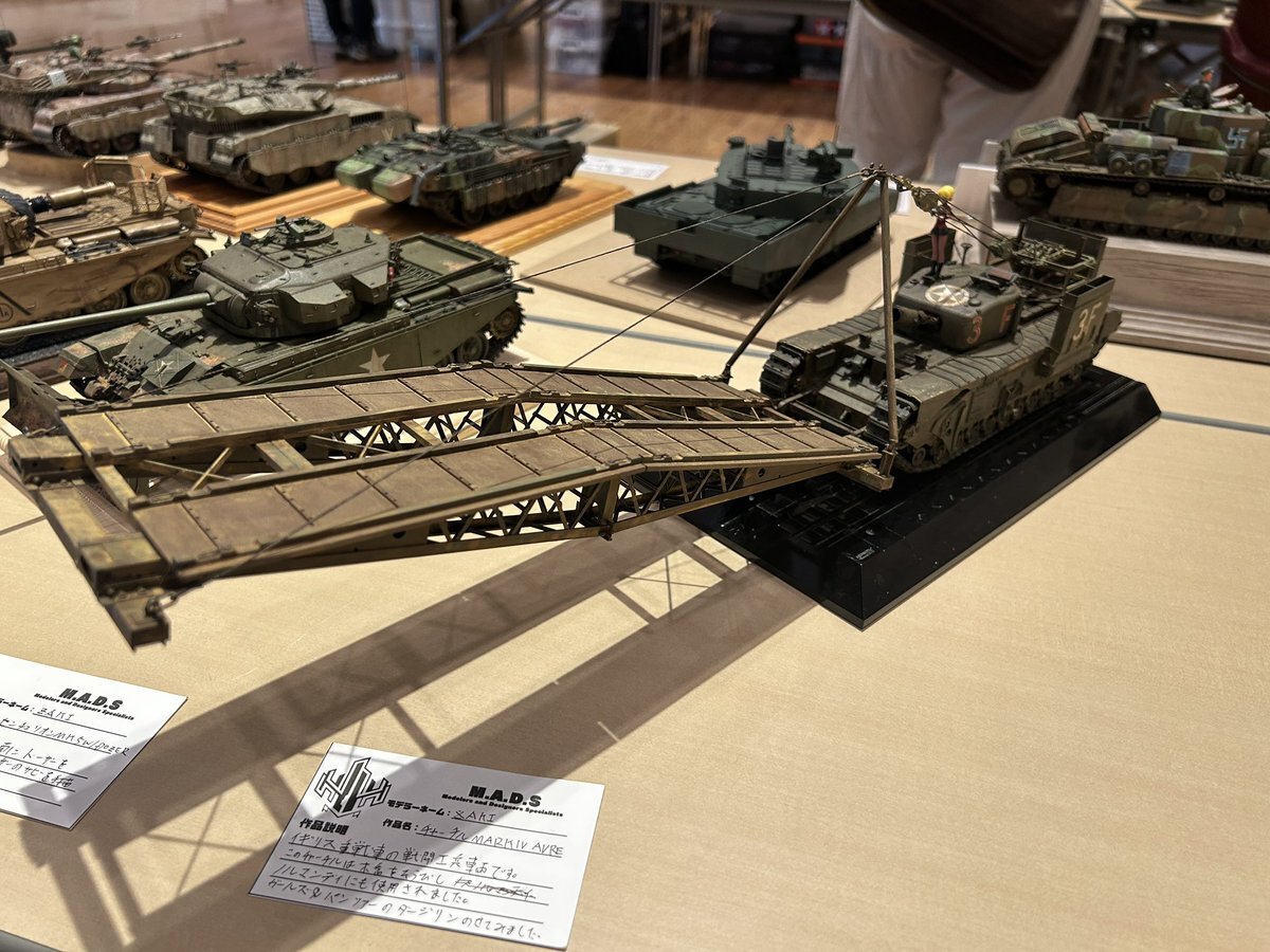 その14 佐世保モケモケサークル女性モデラーの瀬戸さん、戦車模型まだヒトケタですよ!凄いよね✨ HICメンバー花村さん、アーマーモデリングライターならではの実力 作者の方とはお話出来ず💦チャーチルの架橋戦車、良い感じですガルパンのフィギュア乗ってますね。 木下さんジオラマやっぱ上手いわ pic.x.com/jEPEvMOLjR