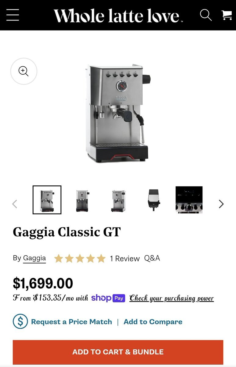 エスプレッソマシングレードアップさせるならgaggia classic GTに決めました!! まだ日本で金額出てないけど、うん!!!!高い!!!!!26万!!!!ひぃ!!!!!!!! pic.x.com/rpfML8vFyu