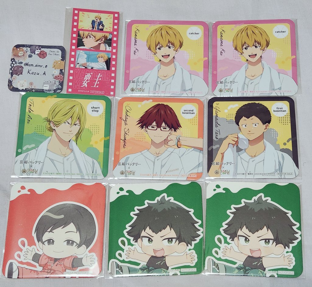 【交換】忘却バッテリー 忘バ RAKU CAFE ラクカフェ SMILE BASE CAFE スマイルベースカフェ コースター フィルム風カード 譲)画像1 要、藤堂、千早、山田、国都、巻田 求)画像2 等身藤堂(決まり次第要>清峰>山田、桐島(藤堂以外はコンプ目的のためゆる募です;)) 郵送or大阪手渡し 異種交換含み→ pic.x.com/Cx42dLIBEd