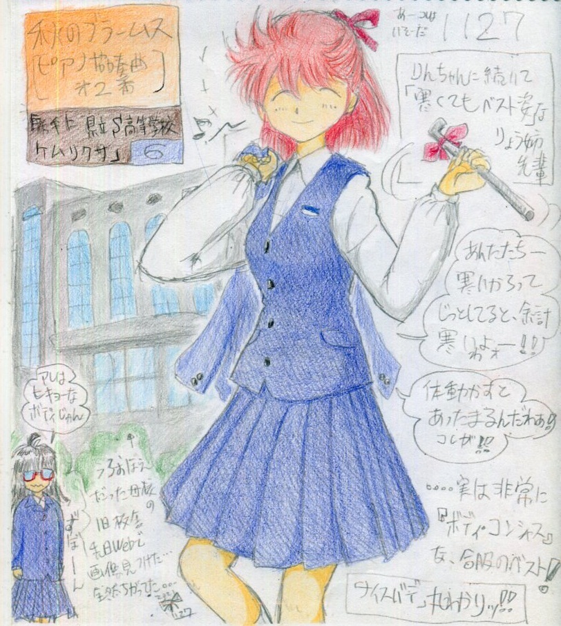 高校生活といえば、「ケムリクサ」その他の架空キャラに母校の制服を着せて「自らの記憶の中にねじ込み“捏造”する」、なんて事もやりました。普通のブレザーとは少し違う、特徴的なデザインでしたからねぇ、H県立S高校の制服。 #ケムリクサ #実在校制服 pic.x.com/jrdWQjtELz