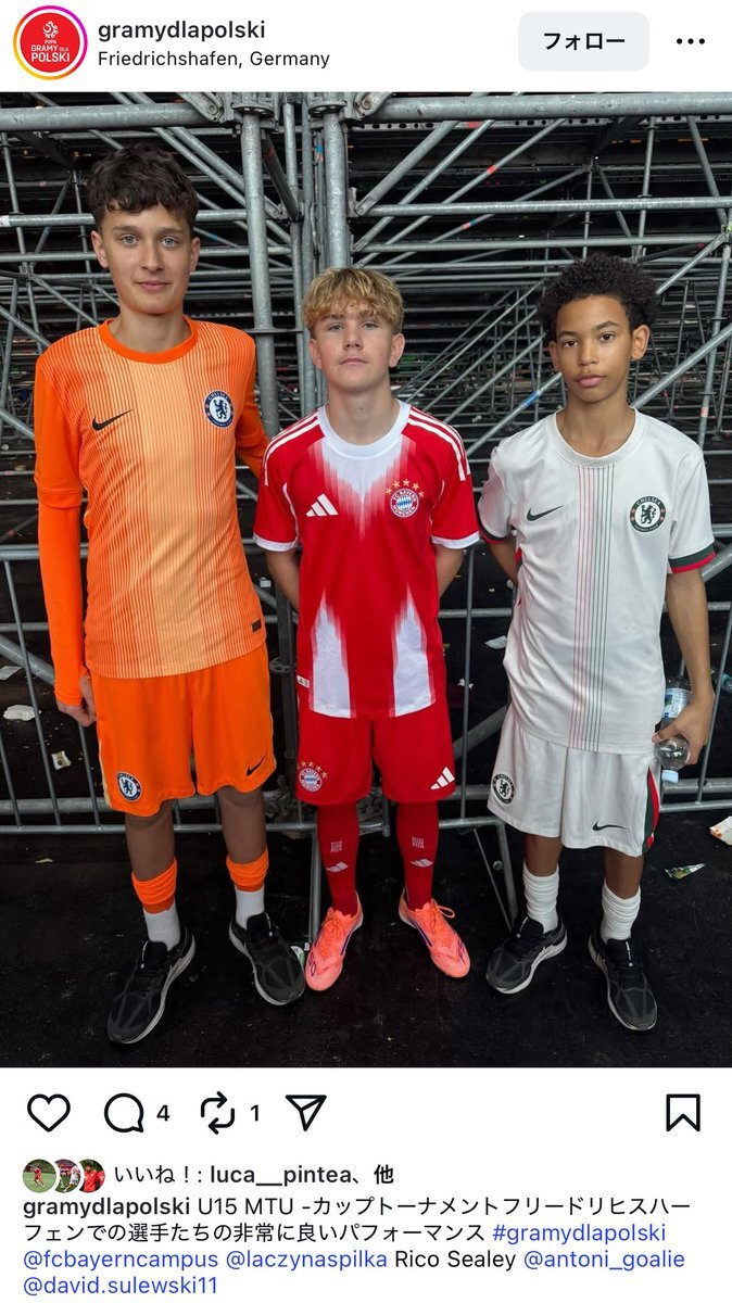 ポーランド繋がりでチェルシーの選手に挟まれるSulewskiでも見て元気出すか。 Antoni MiernikとRico Sealeyも覚えとくね instagram.com/p/DRsED8YjM7d/… pic.x.com/qjTLaACk75