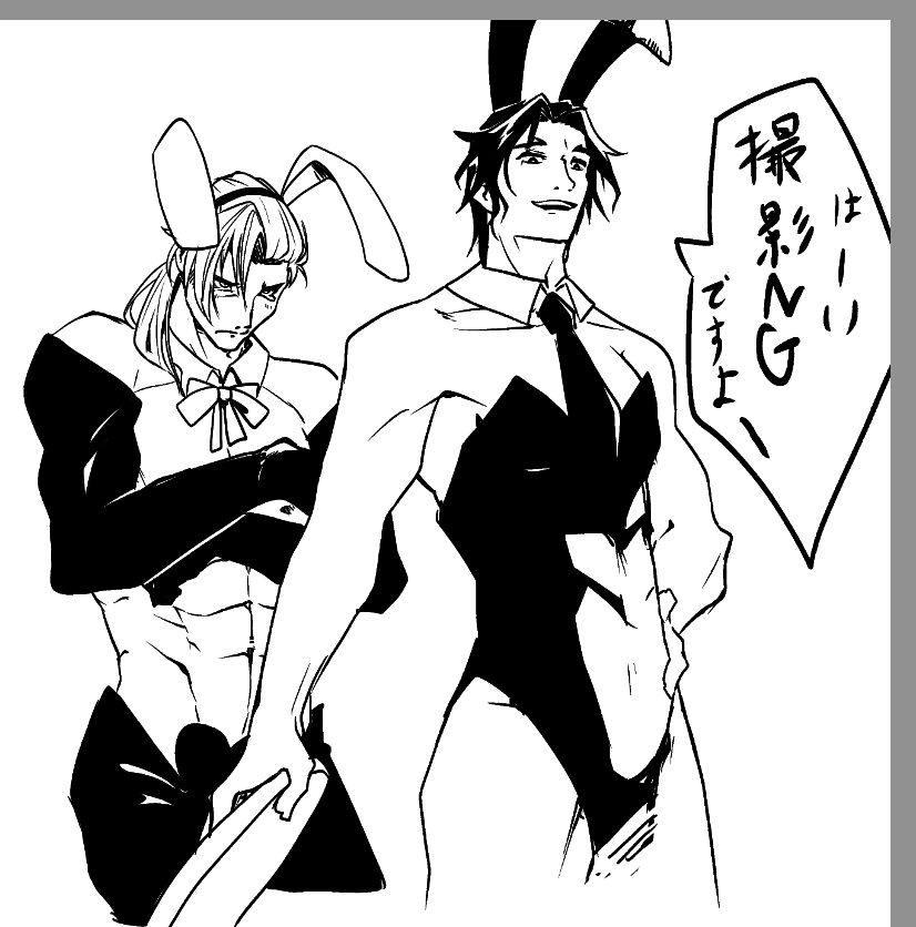 全然睨めてない上に涙目の🌱さんとそれを制すモ そして出で立ちがめちゃくちゃ堂々としているのが本当に素晴らしい 逆バニーとバニーの対比と共にネクタイとリボンも対になってるの最高です🌱さんtkb見えてますよ‼️気付いて‼️撮影はNGだけど凝視するのは良いってことですか 本当にありがとうございます x.com/huriginn/statu…
