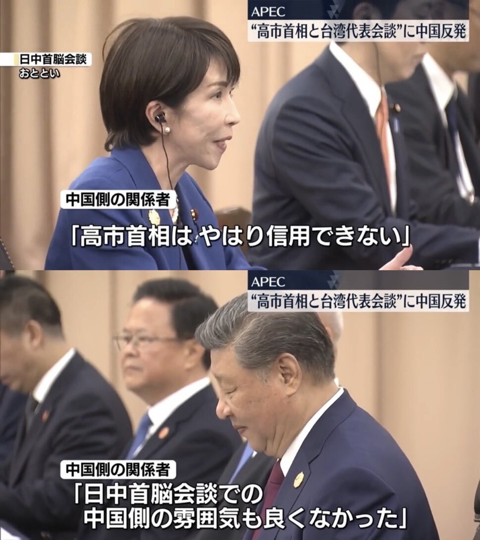 「台湾と会談しただけで雰囲気が悪くなった」 だからといって、台湾を見捨て この国に擦り寄って機嫌をとっても 裏切ってくると思いますよ。 媚中が頑張っても反日教育はやめないし、相手が変わる気がないのに仲良くしようとする必要あるの?