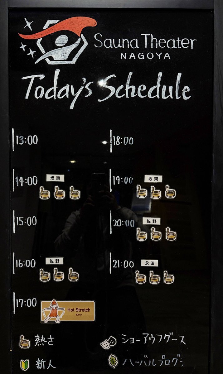 本日11/17(月)のスケジュールはこちら! 安定のおじおばと思いきやラストはキラキラボーイの登場です✨ 佐野の通常アウフグースは今日でしばらくお休みになります🙇♀️ 19日の21時回はHC直前リチュアルの予定です🌿 #ウェルビー栄 #フォレストハウス #サウナシアター名古屋 pic.x.com/sSkuritjww