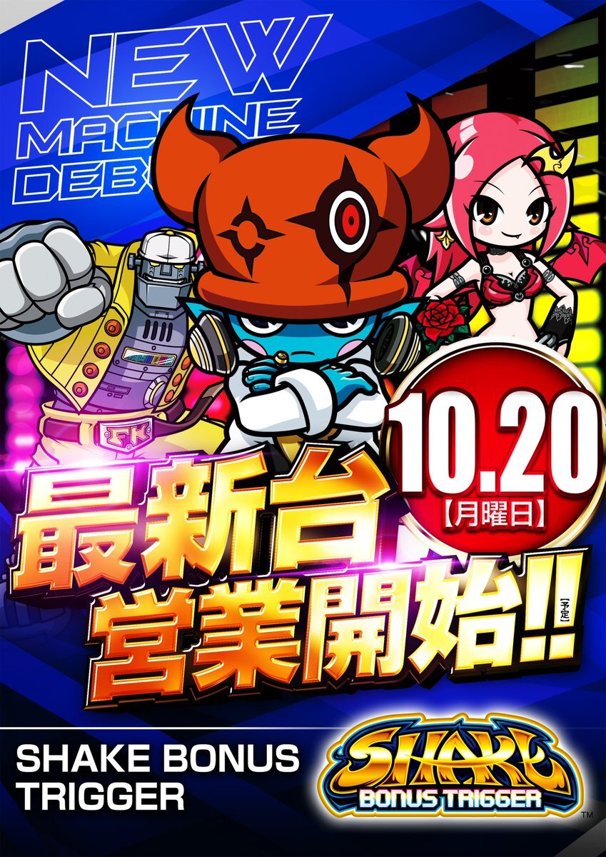 ◤◢◤最新台営業開始◢◤◢ キコーナ喜連瓜破インター店です🌛 明日10月20日(月)から 「SHAKE BONUS TRIGGER」 稼働開始🎊🎊 BT突入時はJACが50%ループと、 強力な連チャン性能に注目🔍 みなさまのご来店 心よりお待ちしております😇 pic.x.com/9i17EwBvP9
