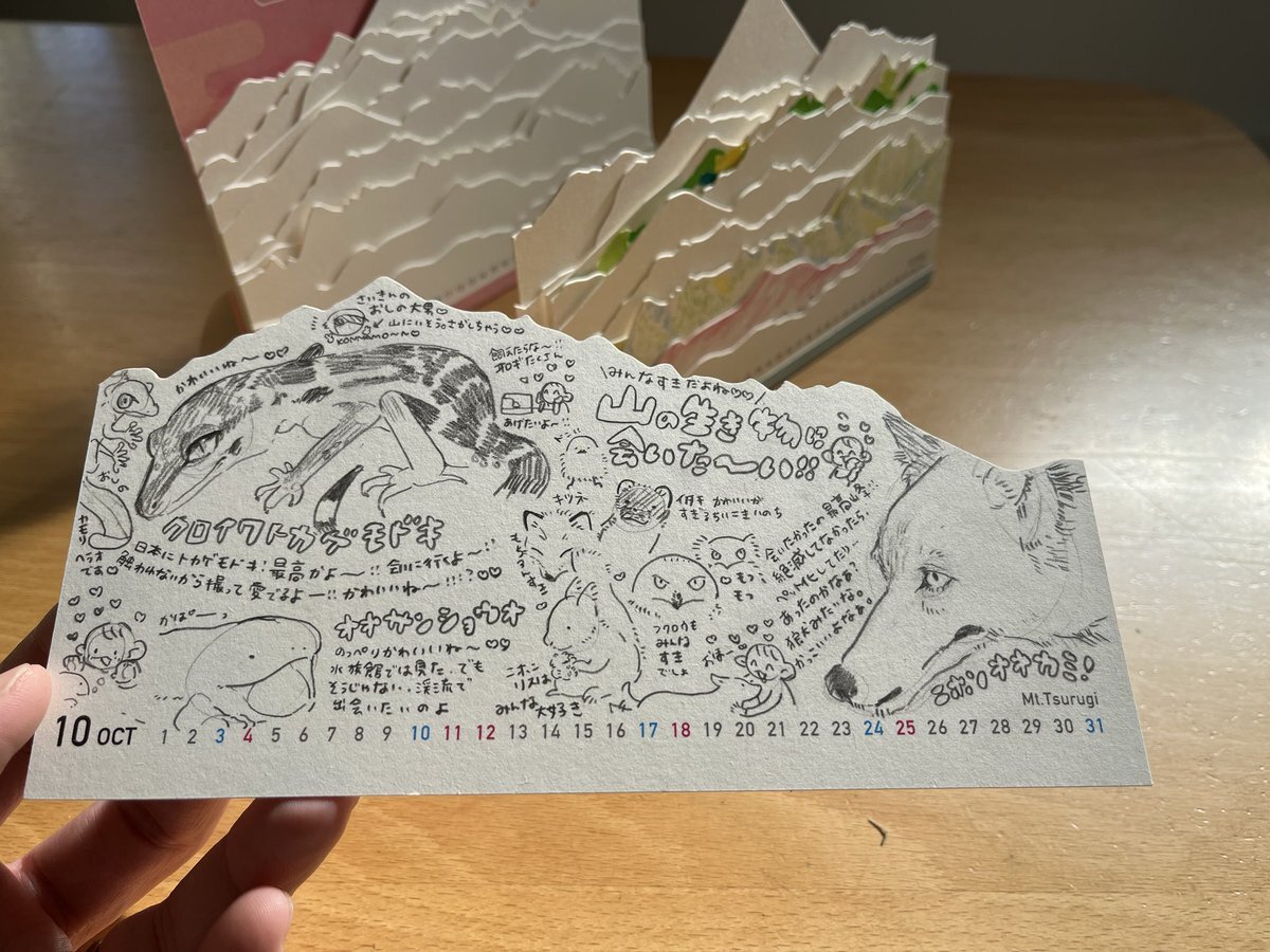 明日は都内のイベントにてヤマメクカレンダーを出品します。実際の山の稜線に基づいてデザインした、来年のカレンダーです。数量限定迎春🎍ボード付き! RE: 3 MARKET 📕 & ☕️ FES 日時:12月6日(土) 9:30〜16:30 会場:杉並区堀ノ内3-48-8 妙法寺にて 奥さんに絵を描いてもらた。…忍者? pic.x.com/6A29JersW9