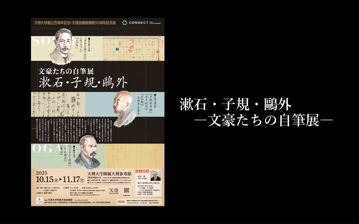 《この週末は文豪の自筆原稿を見に行きませんか》 2025年10月15日(水)~11月17日(月)、天理参考館(奈良県天理市守目堂町250)で、展覧会「漱石・子規・鷗外―文豪たちの自筆展―」を開催中。 詳しくはこちらtcl.gr.jp/exh/exh-7377/