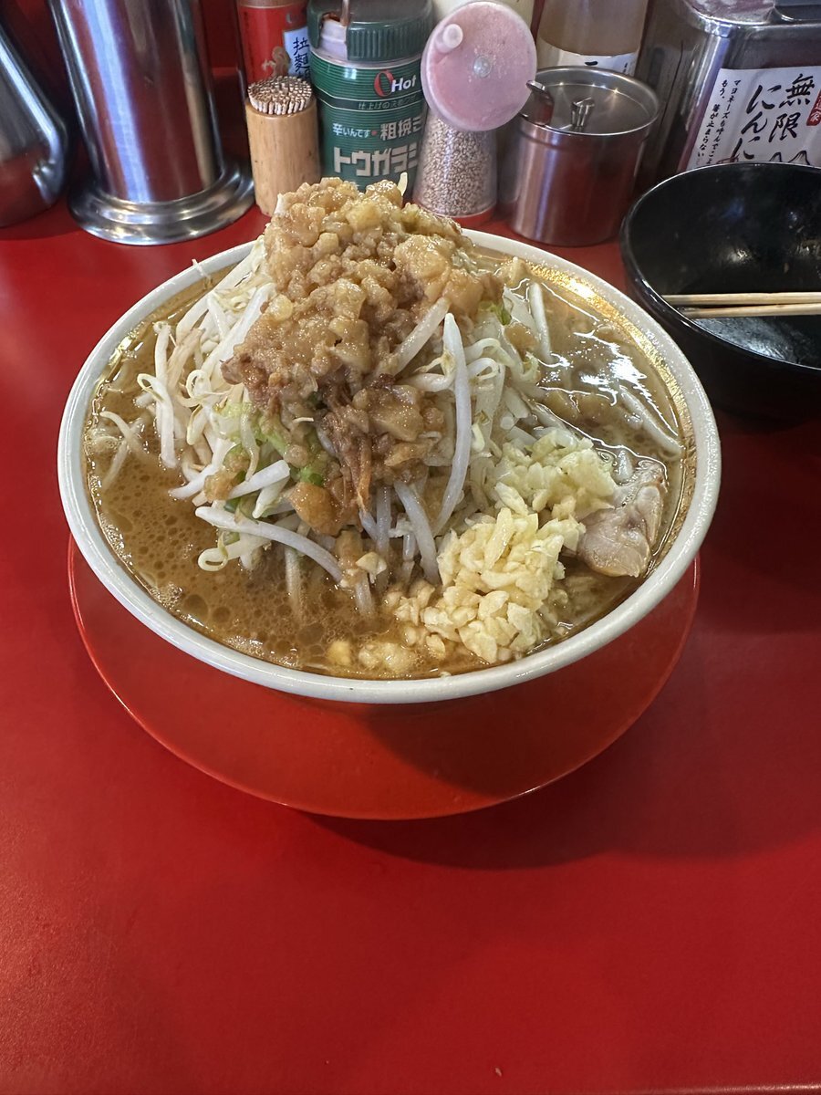 今日は早朝から伊賀でお客さんとゴルフでした〜帰り道に天理を通るのでふらっと我道家に入店。 家系の二郎があると聞いてたので注文してみたら美味い! スープが家系、麺が二郎という組み合わせ。濃厚でクリーミーな家系スープに二郎の太麺が絡み合ってまさにマリアージュでございました #わた飯 pic.x.com/vXxIzSBGjd