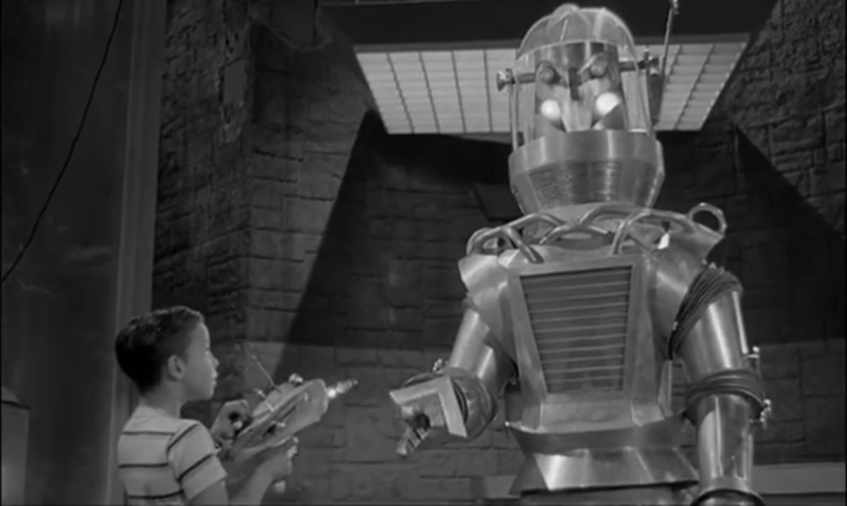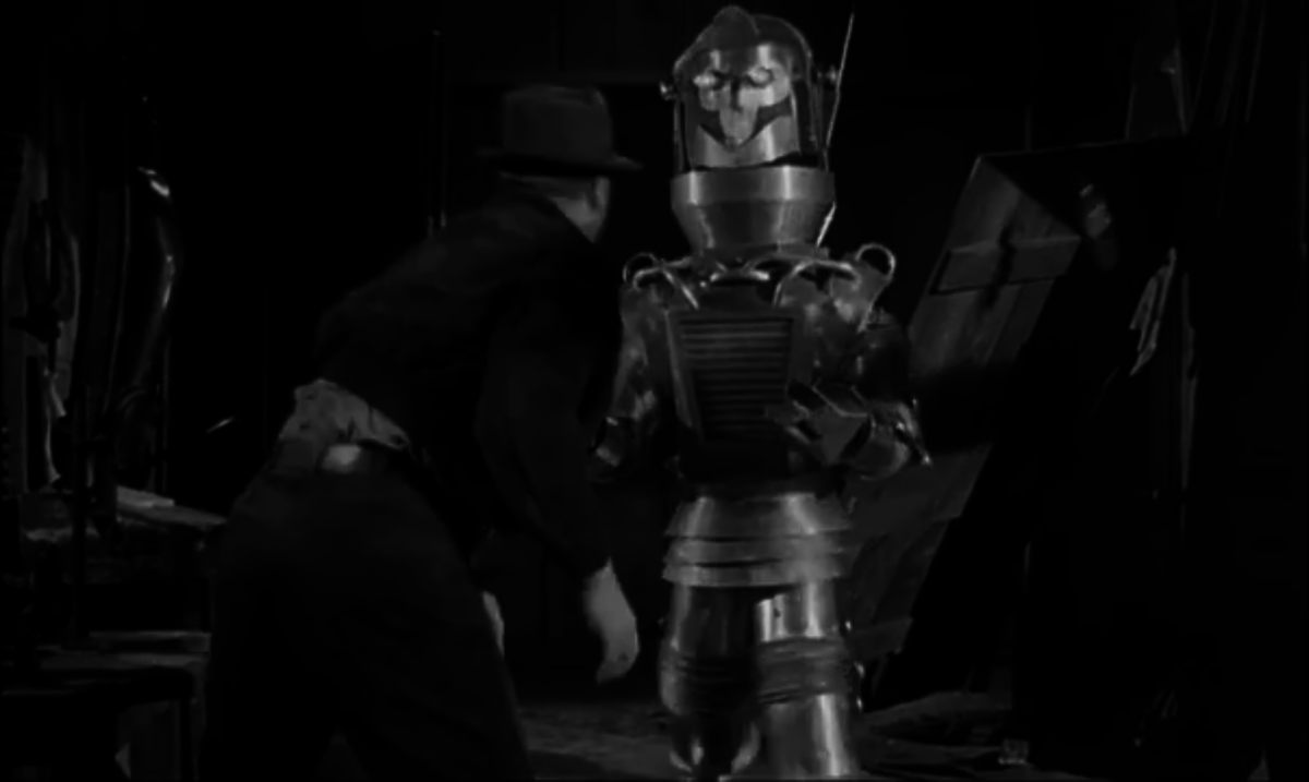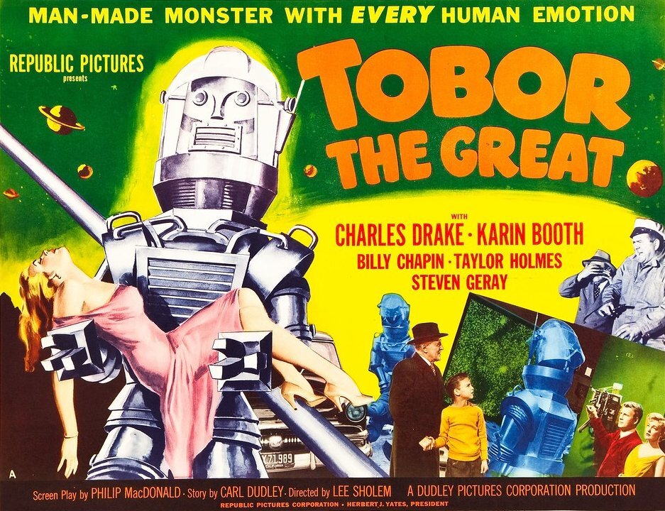 リー・ショレム監督作、偉大なるトボー (1954)を見る。有人宇宙飛行には次期早々と考えた科学者らがESPで制御するロボットを製作するが。科学への楽天性と冷戦の影がいい湯加減で物語を駆動するロボット物SFで、いかにも50sと言えるトボーのデザインも上々、暫し少年の頃に戻れる空想科学映画の佳作。 pic.x.com/E0iS4Ug3X0