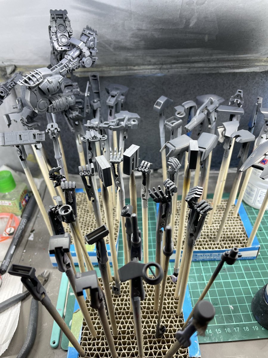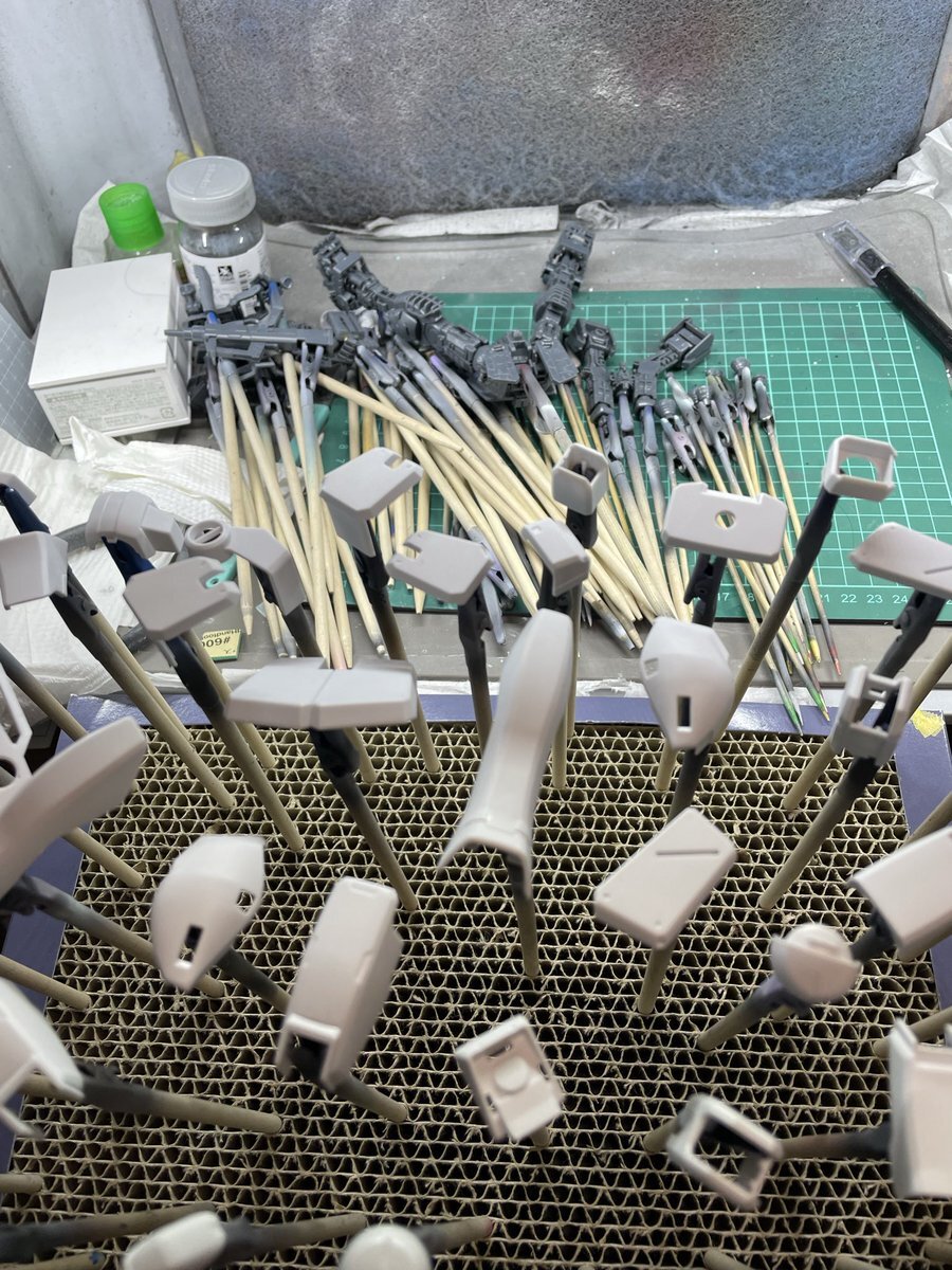 おはようございます♪ 今日は金曜日‼️ ちょっと喉が痛いので午後休暇取って医者に行こうと思います😓 昨日の夜はMGジムコマンド宇宙戦仕様の塗装準備と赤いパーツ以外へメカサフを吹きました。 なんとか塗装工程まで来ましたよ…😮💨 寒い中窓開けて塗料吹いてたので喉やられたのかな😭 pic.x.com/ZQcF5VWVxK