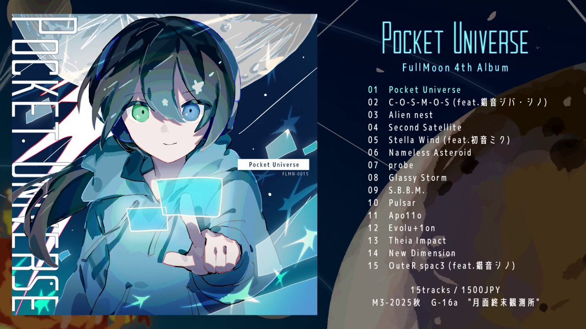 【新譜|M3-2025秋】 ─この手から、無限大の宇宙を描いて─ 活動10周年を迎えるFullMoonが贈る、集大成のフルアルバム。 『Pocket Universe』 - 15曲 - 1500円 - G-16a "月面終末観測所" 特設サイト・通販: sites.google.com/view/pocket-un… Long XFD: nicovideo.jp/watch/sm455311… #M3 #秋M3 #M3秋2025