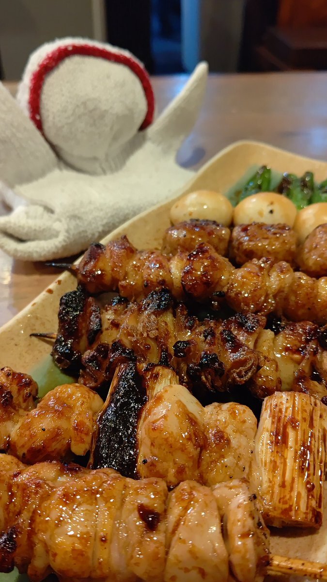 「小名浜・扇屋さんにて。先ずは、『串盛り合せ7本』を注文。7種の美味しい串焼きを、いただきました。byモブおじさん」 「ぼくの おきにいりは つくねと たまご だよ♪ やきとり いただきま〜す♪by軍手ちゃん」 pic.x.com/8XPMF2mMhx
