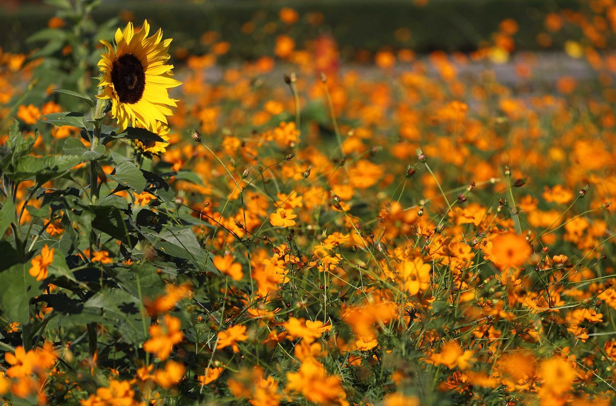 今日も気持ち良い秋晴れ。17℃超えてポカポカ暖かい‼️先月の10月30日。小野市のひまわりの丘公園です。夏は一面ひまわりが咲いていましたが、秋は400万本のコスモスが一面咲いています。ひまわりがオレンジのコスモスを見下ろしています。 pic.x.com/B3ipkfH5J9