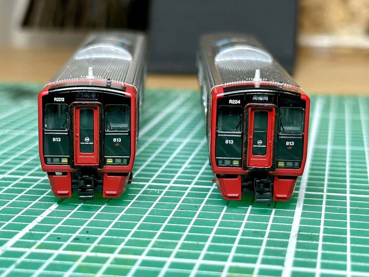 KATO 813系 前面幌2つ目完成です。 激ムズですが、幌を装着した瞬間に全て吹き飛ぶくらい「やってよかった」塗装です。 3つ目は失敗してしまい、始めからやり直しているので、もう少し時間が掛かるでしょうか。 x.com/aguri_trip/sta…