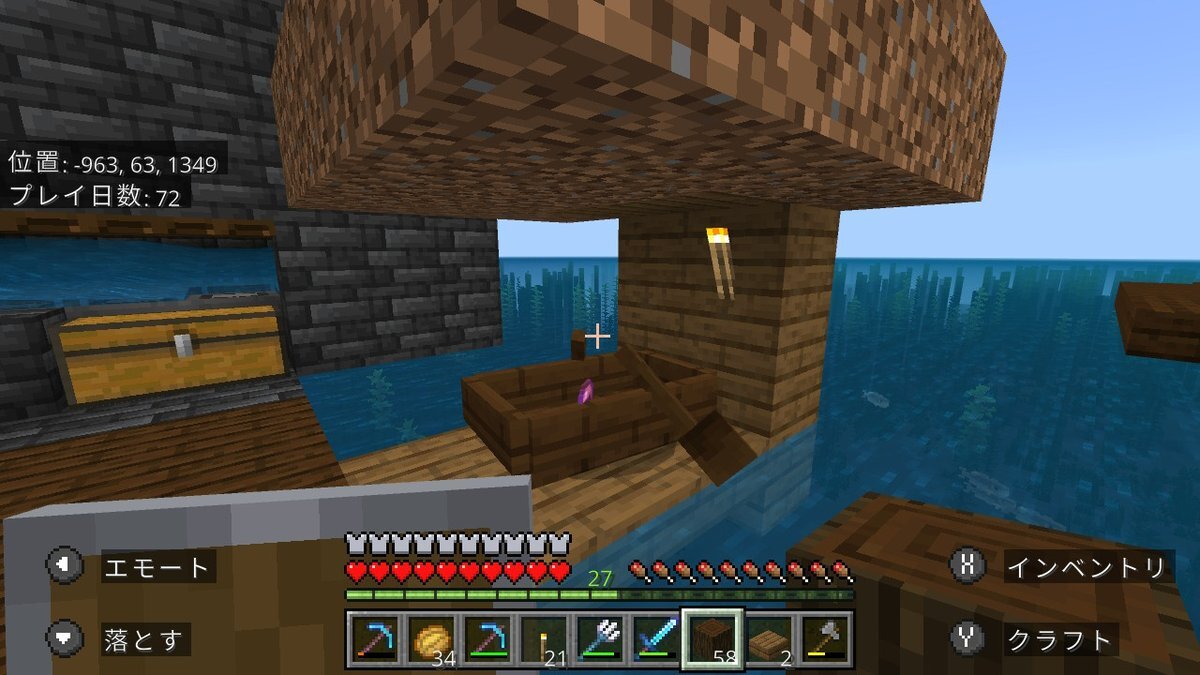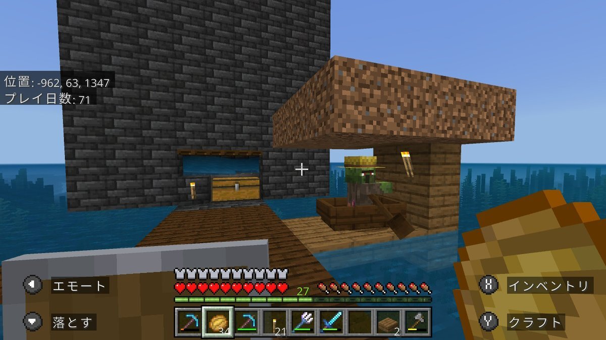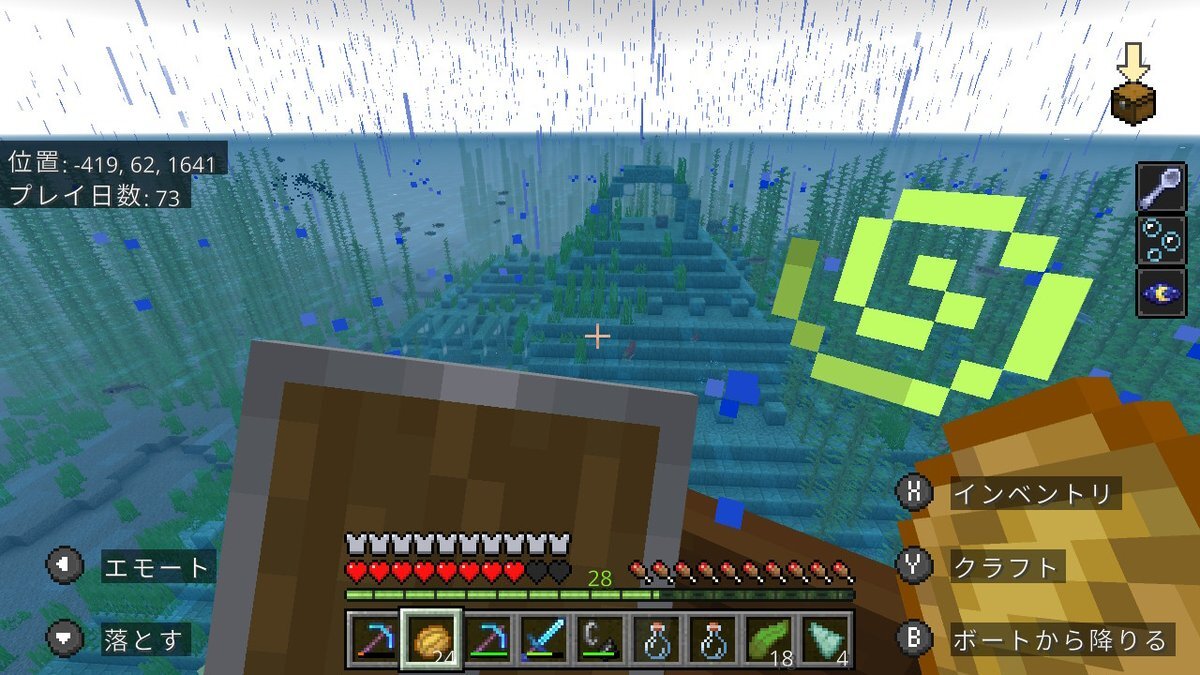 day71~77 前に作ってあった簡易的なトラップに、村人ゾンビが😳 屋根付きのボートに確保し、ポーションと金リンゴを作成して戻るとどこにも…。 距離的には大丈夫だったはずだけど…。 TNTを作成して海底神殿再挑戦。攻略できました 残り20日ちょっと #Minecraft #マインクラフト #孤島100day pic.x.com/vQCM1vpxG3