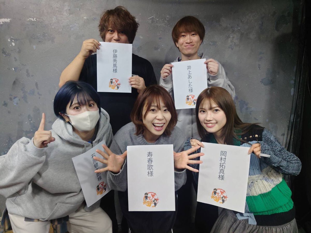 『天竺生地 vol.23』 11月24日(月◦祝)  出演者の皆様の顔合わせでした。 素敵なキャストの皆様の、第1回〜3回と設定が変わる即興芝居、お楽しみに🍀 🔴伊藤秀馬 🌸井寄優 🩶岡村拓真 🟠寿春歌 🍋‍🟩大塚れな 🟡井上あした 🟣小俣一生 🟤石原健太郎 ⚫️若松春奈 ※日替わりMCサポーター #天竺生地 pic.x.com/L2pzsnbYQJ