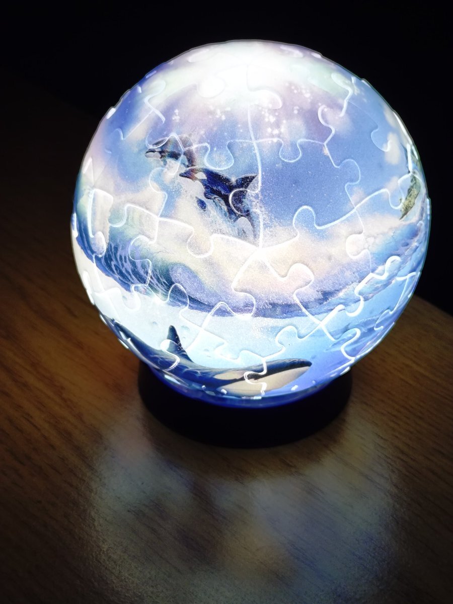新しいパズルが完成です 1ピース足りなかったけど 送ってもらったのでやっと完成 ランプがつくので幻想的 pic.x.com/xMPIIO9OQ7