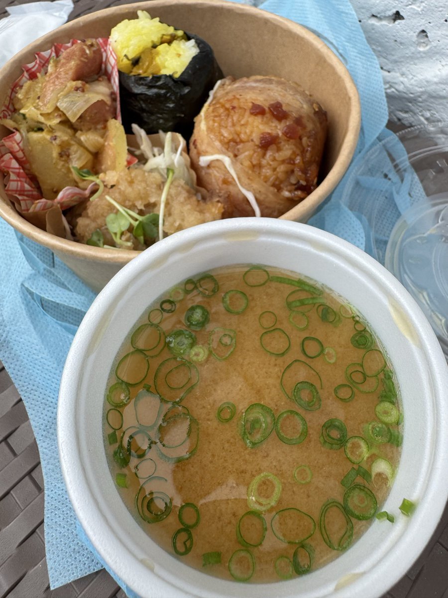 徳島文理大学の真横の細道にあるお弁当店『はしぞう』さん🍱 •肉巻きおにぎり🍖デカイ😲 •高菜おにぎり🍙デカイ😯 •サンマ竜田揚げ🐟 •ジャーマンポテト🥔 •サツマイモ入りお味噌汁🍠 この内容で600円!! しかも550円から値上げしてこれ、 お得すぎる٩(๑❛ᴗ❛๑)۶クレープもあり😋 pic.x.com/c2cqyusepK