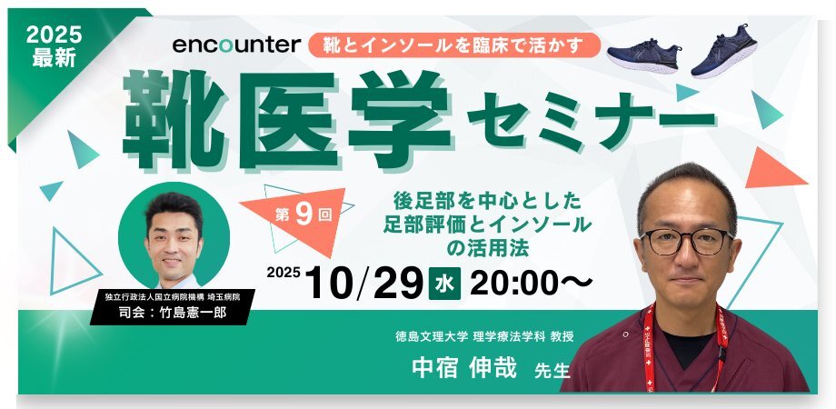 ーついに最終回!!ー 【第9回・最終回】靴とインソール医学セミナー 「後足部を中心とした足部評価とインソールの活用法」 お申し込みはこちら👇 peatix.com/event/4552219/… ⏱2025/10/29 (水) 20:00 - 21:30 👨講師 中宿 伸哉 先生 徳島文理大学 教授(保健福祉学部 理学療法学科) pic.x.com/h0j2KxY4gY