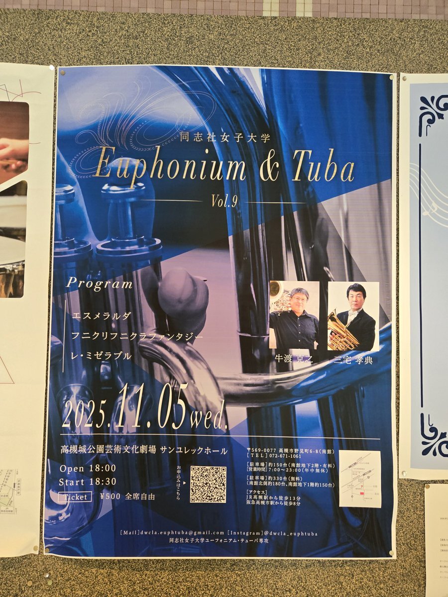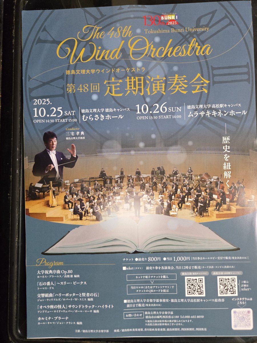 近々開催されるふたつのコンサートのご案内です。徳島文理大学ウインドオーケストラ定期演奏会と同志社女子大学ユーフォニアム・チューバアンサンブルコンサート…。徳島文理大学ウインドオーケストラは徳島と高松の2公演、詳しくは画像を拡大してチェックしてください。よろしくお願いいたします。 pic.x.com/jDrsDqHySZ