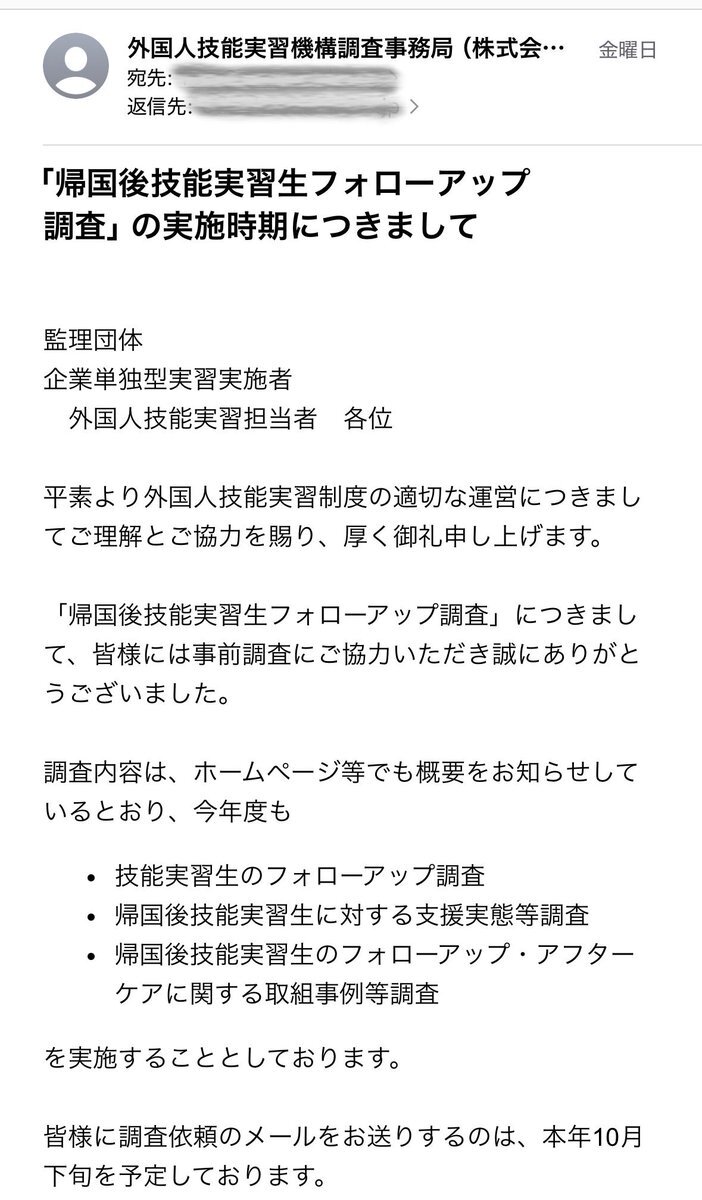外国人技能実習機構調査事務局 「帰国後技能実習生フォローアップ調査」 技能実習の監理団体の皆さんは大変ですね。 実習生の監理は全部自分達でしなさい、他社に委託すると場合によっては名義貸しによる他者による監理とみなすって言いながらOTITさんは自分達の仕事は外注出しまくりですからね〜 pic.x.com/mWhTG1Miqe