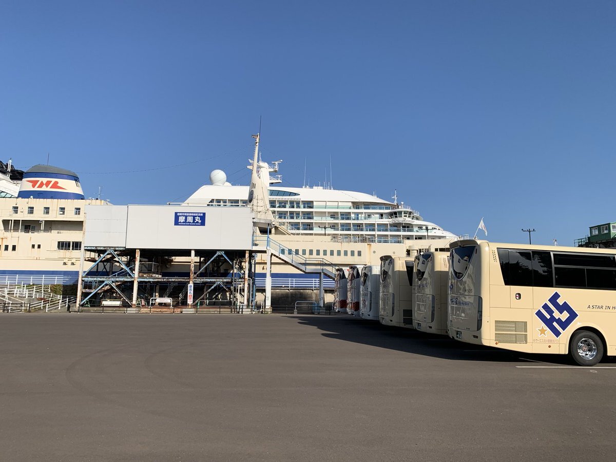 港町埠頭に向かっていたらシーボーンが若松埠頭に変更になったのに妻が気付き急遽向かうと着いたの5時40分😓見渡しても摩周丸だけなので警備員らしき人に聞いたら既に出港して影も形もない😨良く調べたら当日Xでお知らせしており、出港時刻前後1時間以上の変更も通知している。勉強になりました😑