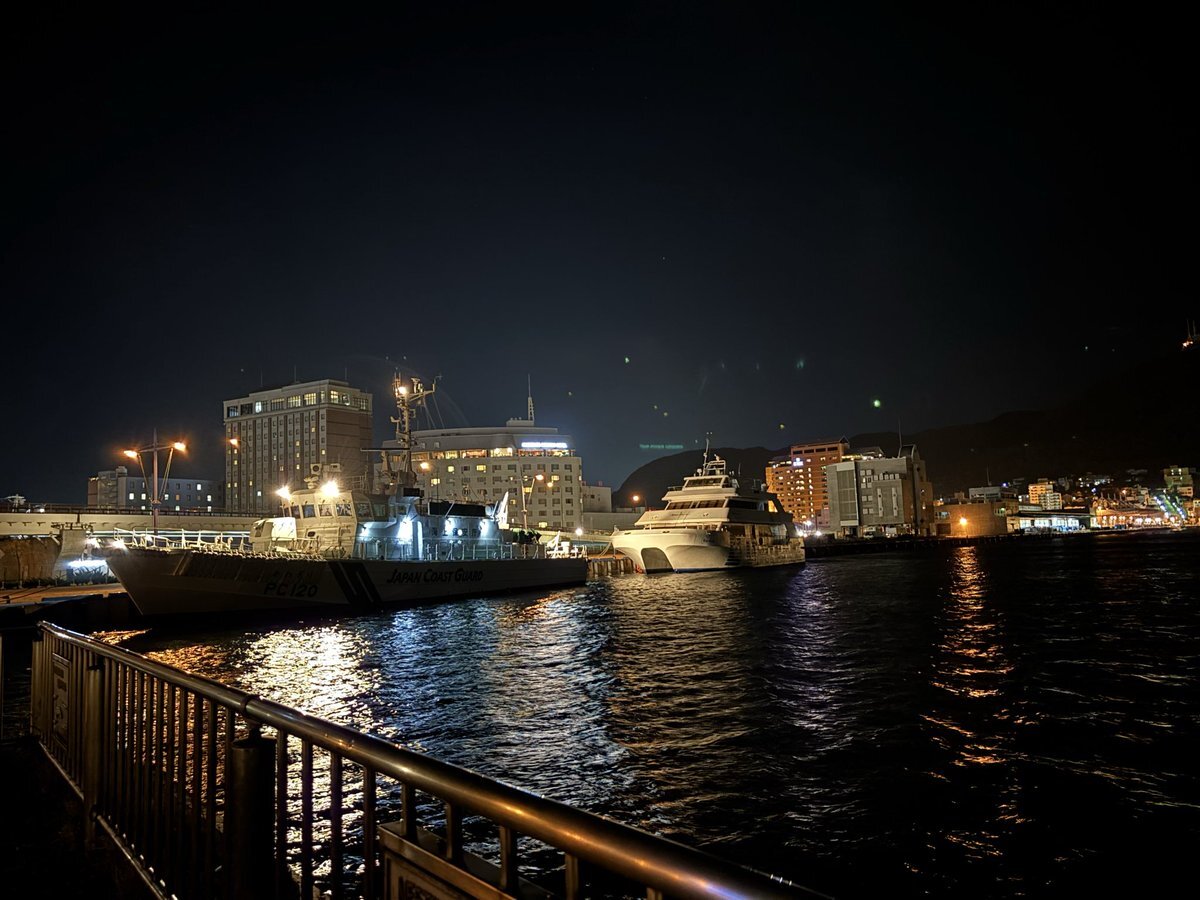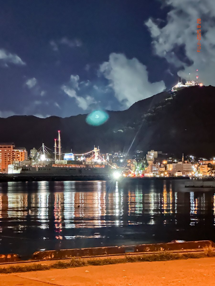 また摩周丸のとこきた 今度は逆に函館山方面の夜景 これもいいね pic.x.com/5O5pzCHcbJ