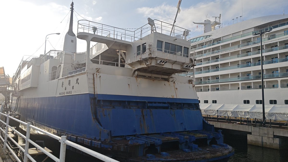 摩周丸来たけど後ろにでけぇクルーズ船いる pic.x.com/zr34XtkwtJ
