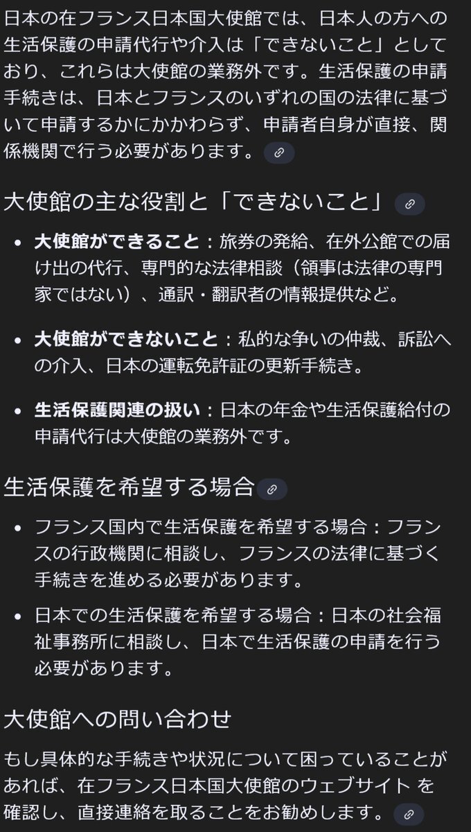 返信先:@milfoil91他1人日本国内に定住している以上、生活保護をはじめとする行政は日本政府が行うことであり、外国の大使館は管轄外。 外国の大使館が勝手に行政を行えば、内政干渉になる。 pic.x.com/lJcvL0q865
