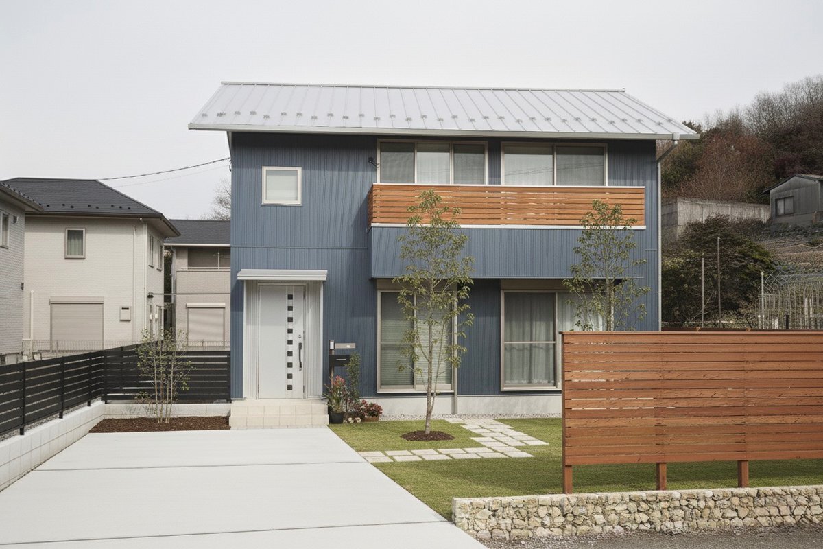 【切妻屋根の2階建ての家】 バルコニーとフェンスの木製横格子がアクセント 自然素材でつくる心地よい空間 住む人に優しい木の家づくり 納得がいくまで間取りと金額の打合せを行います! @wadahousing → wada-h.co.jp pic.x.com/co4tHNo6zY