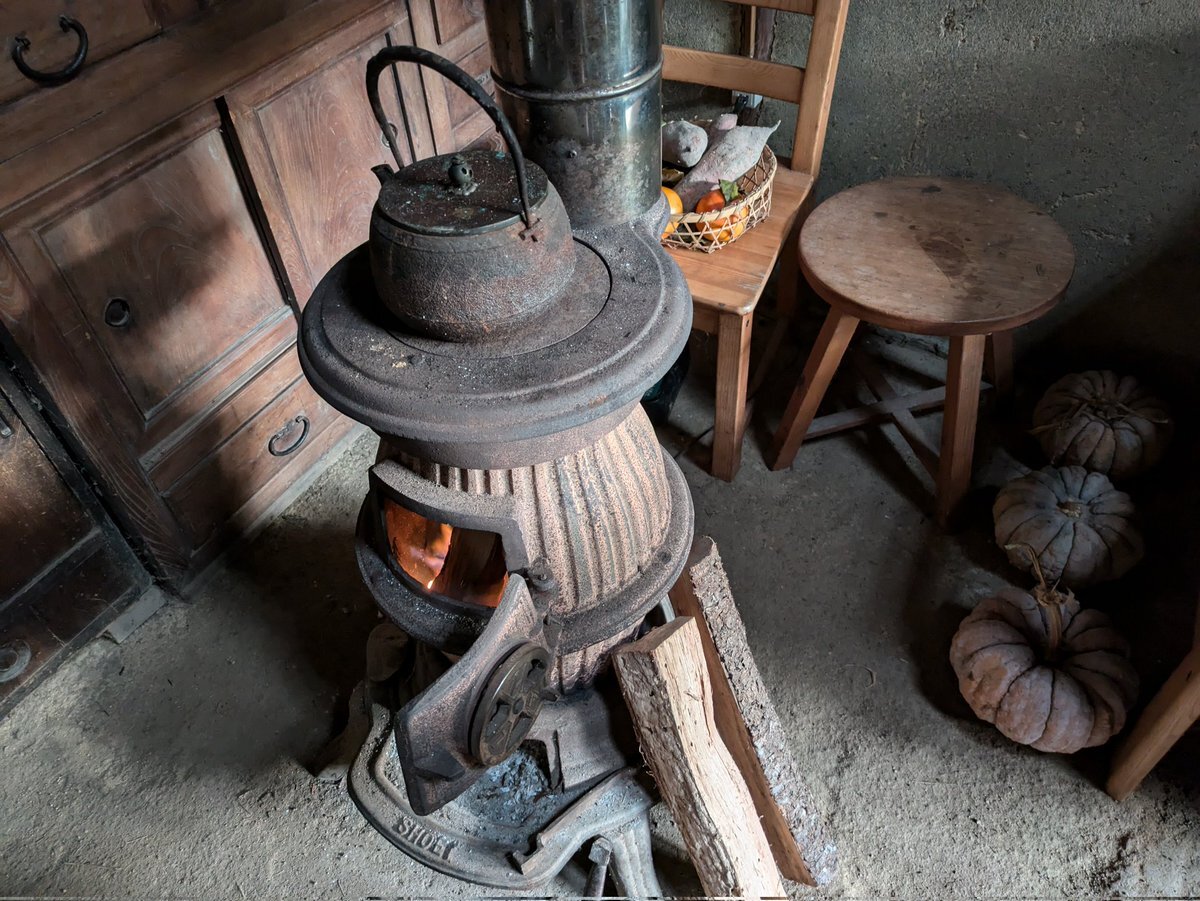 共に💕 あらかじめ仕込んでおいた紙くず杉葉焚付に火をつけると微かな音が聞こえるやがて薪に火が移りパチパチそしてゴーゴー音を聴くと毎度ながらホッとして冬の一日が始まります 気難しい日もあるダルマストーブ かなり劣化してきました わたしも頑張るからもう暫く二人三脚 しておくれよ
