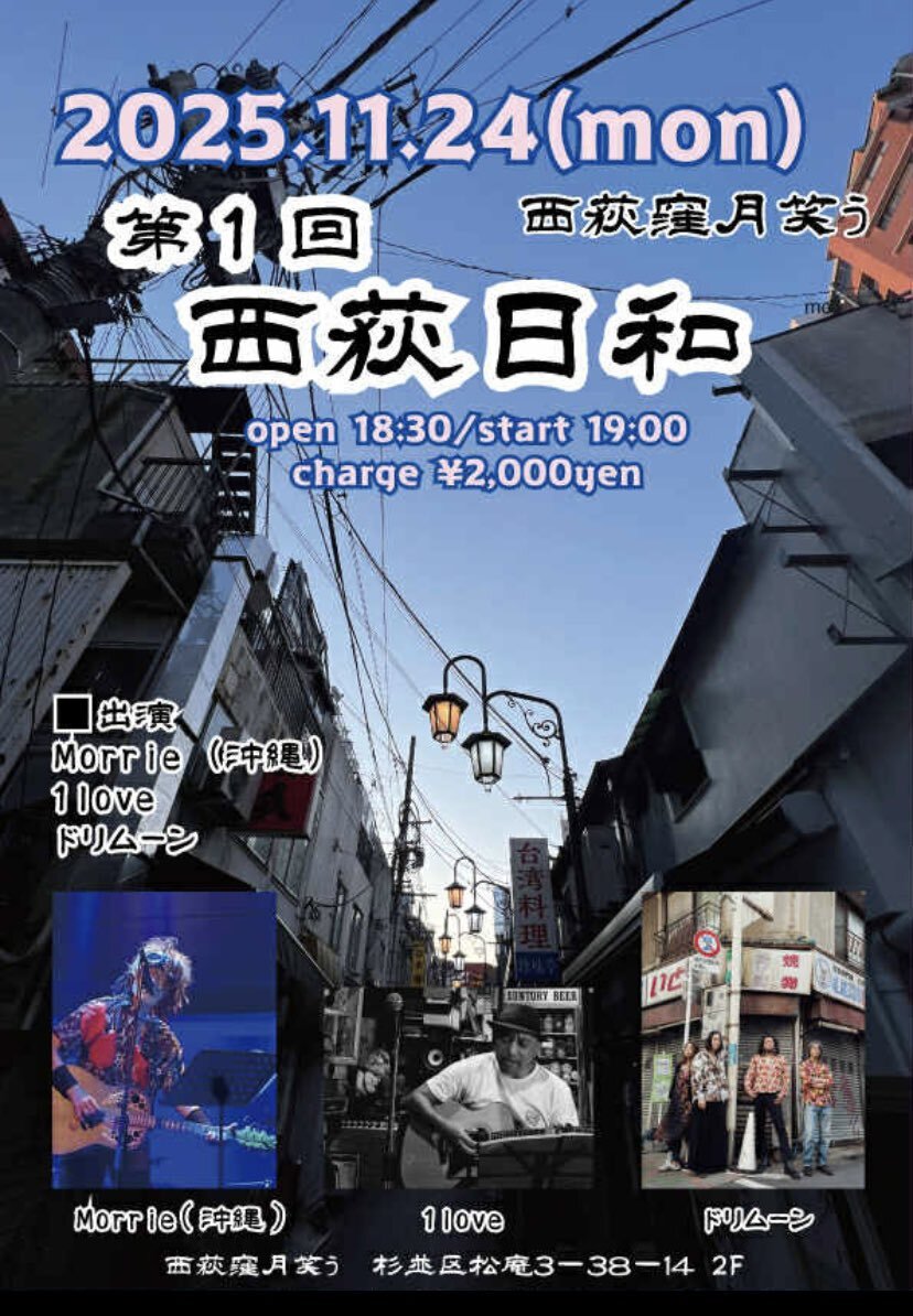 モーリー近況 モーリー秋の東京第二弾、先ずは11/23勤労感謝の日曜日。親愛なる別ピーさんのイベントに享楽ツインテールの日で参戦。我々はトップで15:00です。ゾンビ本庄が今回もguest。タバサやります。 11/24月は西荻窪月笑うへ。沖縄でご一緒した1LOVE吉田さんのイベントにモーリーソロで参戦! pic.x.com/LGMq6eFiCs