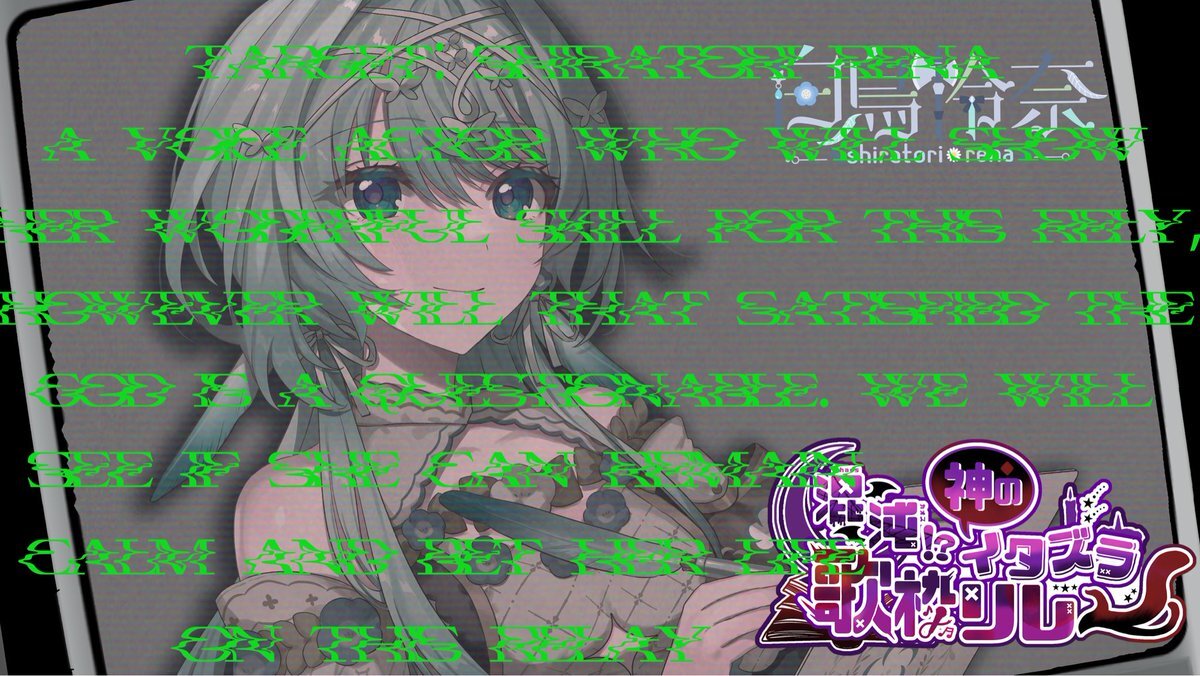 👁️ #神のイタズラ歌枠リレー 🎭 \\ 開催まであと2日 // ⑫白鳥怜奈 10/25(土)20:30〜 12人目として選ばれたのは 白鳥怜奈 @shiratori_rena_ V声優にも神の魔の手が…!イタズラが織りなすは、幻想の物語か──それとも、狂気の幕開けか。