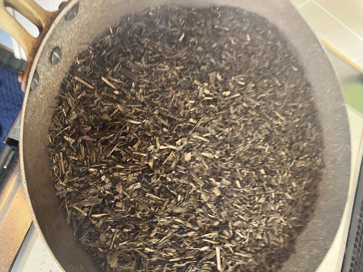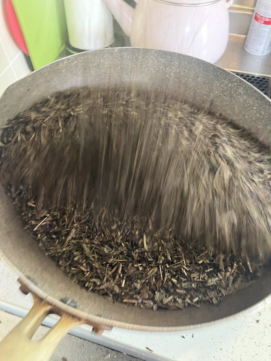 家中焙煎のかほり ꉂꉂ(´ơ ∀ ơ`)w𐤔 キッチン粉だらけ( ´. .̫ . `)↯↯ 粗熱抜けたら パックして シーラーするざます やっすいお茶でおけ 椿大社のお茶を使う 荒茶で800g1000円ちょい pic.x.com/3WnJCduq8D