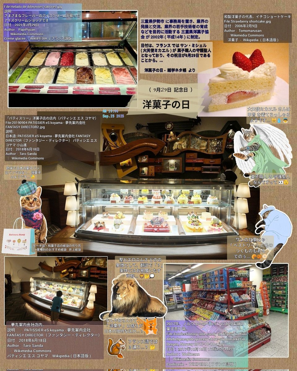 こんにちは、お疲れさまです。 「 記念日 」は前後するのですが、「 翻訳 」絡みで... まぁ何かの対象の名前の数なんて、国や文化により多種多様なのです。「 括り方 」もそれぞれですし... そんな「 何か 」が垣間見える記念日です。👀😯💭 洋菓子の日(9月29日 記念日)