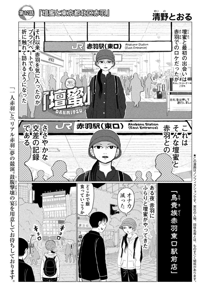 【モーニング49号本日発売!】 『「壇蜜」』は、第12話「壇蜜と東京都北区赤羽」が掲載! 清野とおるといえば赤羽。そして壇蜜との出会いの場も赤羽。 満を持して赤羽での酒席報告をお届けします。 コミックDAYSでは4ページもの「おまけ」つきで配信。こちら↓からぜひ! comic-days.com/episode/255146… pic.x.com/IbU0Jxpz1x