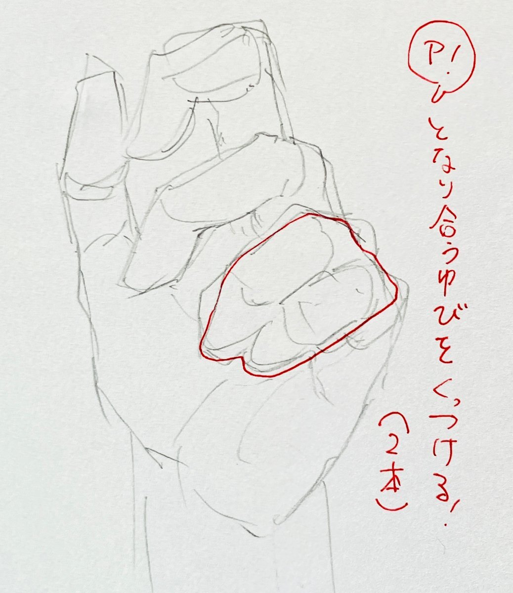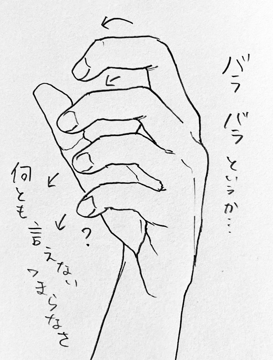 漫画家志望のフレンズへ。 自分が手を描く時に意識する事は「となりの指をくっつける仕草」です。 指は一本ではなく隣の指と連動します。すこし大袈裟に「小指と薬指をセットに」アタリを取ると、「手の仕草」が出しやすいです。 #日々描く pic.x.com/hPgNPZJ5h9