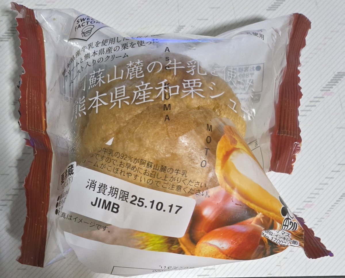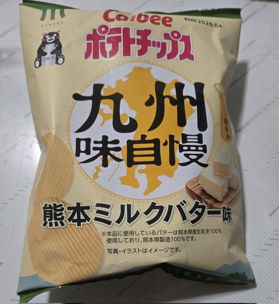 熊本ミルクバター味(甘塩っぱかったです)のポテトチップス、阿蘇山麓の牛乳と熊本県産和栗のシュークリーム、球磨山江村の栗んとう、美味しいですよ♪ #復興に向けて手を繋ごう pic.x.com/K8csDBrSC7