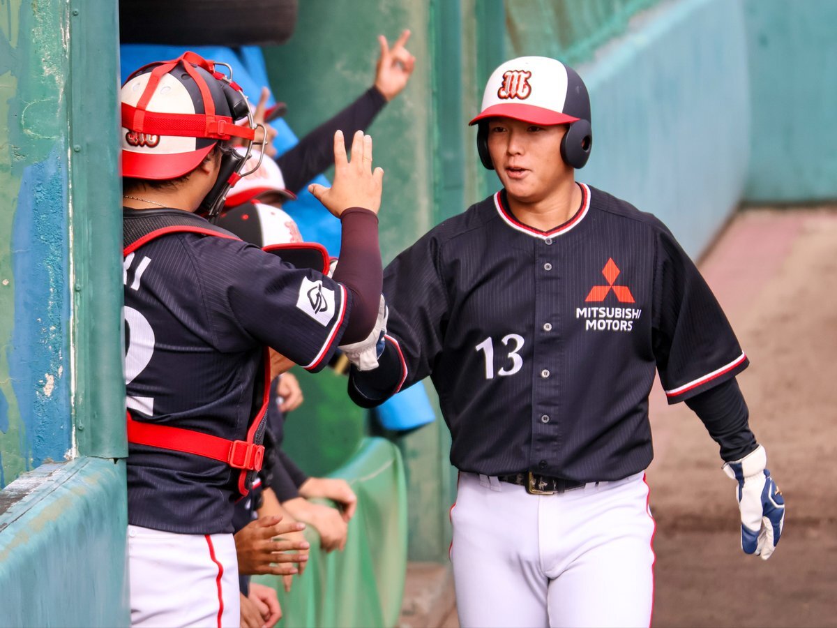 2025/10/19 岡山県・島根県社会人野球選手権大会 松本くんが打つとベンチめっちゃニコニコになって最高の雰囲気になるから、これからも打ちまくってくれ〜!!! #三菱自動車倉敷オーシャンズ pic.x.com/g61ikKqt6p