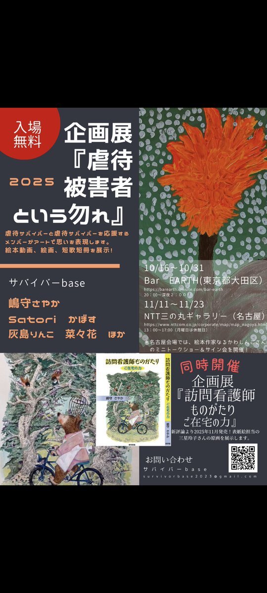 企画展『虐待被害者という勿れ』in 2025です。よろしくお願いします。 #虐待被害者という勿れ #bar_earth #NTT三の丸ギャラリー #サバイバーbase #嶋守さやか #新評論 #訪問看護師ものがたり