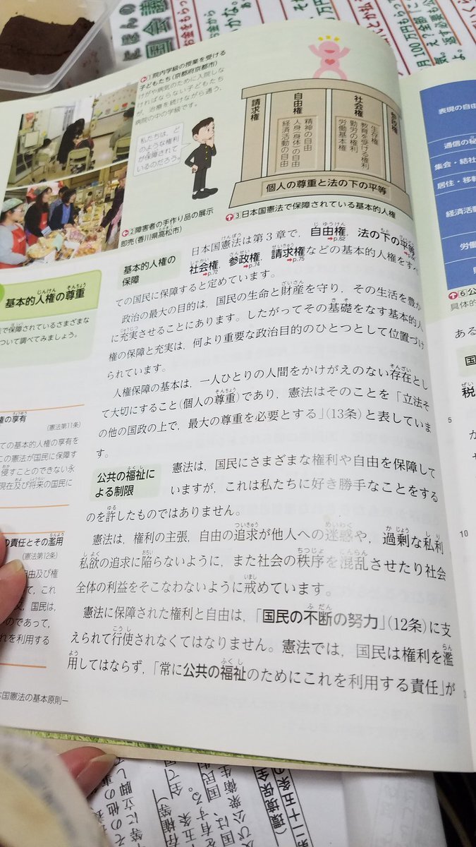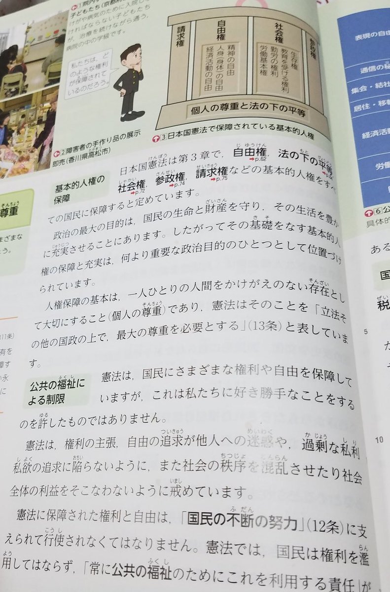 安倍は右翼団体・日本会議の人。高市早苗も然り。日本会議は良いの?安倍は安倍政権中に教科書改訂して、基本的人権の項目の内容を自民党の改憲草案にしましたよね。 画像 教科書・育鵬社刊 日本会議の研究・菅野完著書 赤旗新聞 pic.x.com/H6C16CD70t x.com/nihonpatriot/s…