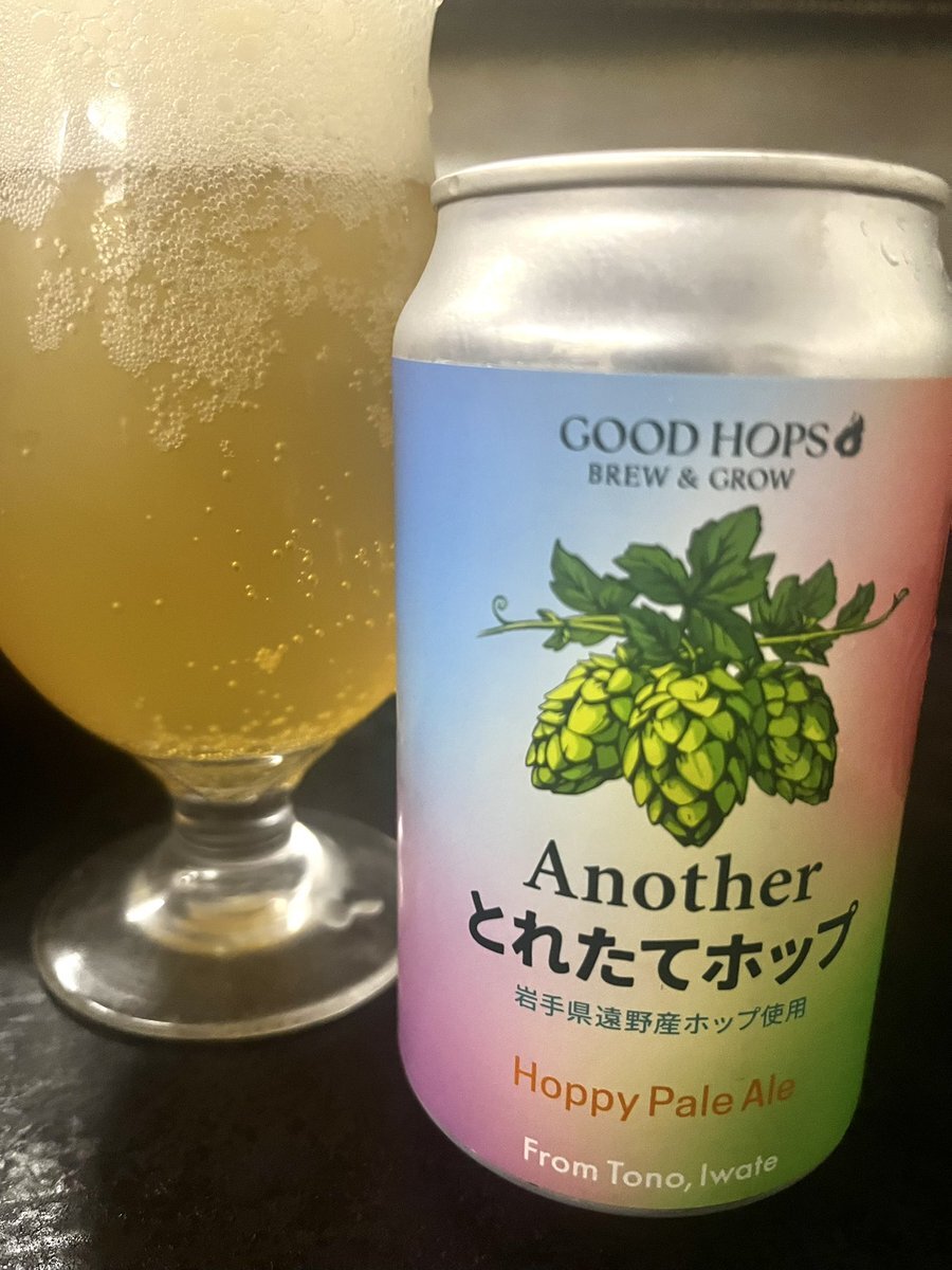 今夜の1本目☺️ #GOODHOPS の Another とれたてホップ ☺️ スタイル:ホッピーペールエール IBU:?? アルコール度:5% 岩手・遠野のブルワリー😊ホップも自社栽培する👍 醸造責任者は、KIRIN「一番搾りとれたてホップ」の開発者だそう😳 IBUKIも使われてるこのビール😊 気持ち軽い感じかな🤔 pic.x.com/08v9f60Buw x.com/bemybabyyou/st…