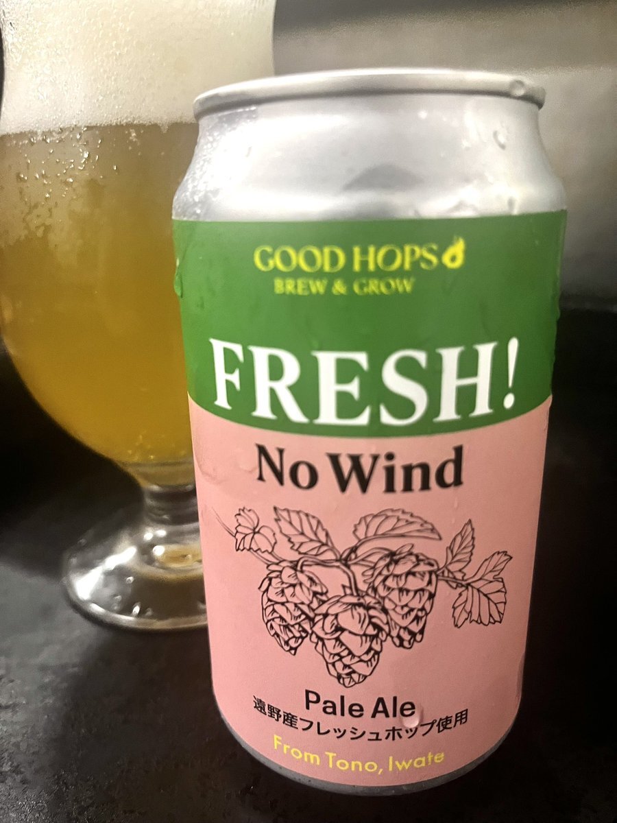 今夜の2本目☺️ #GOODHOPS の FRESH! No Wind ☺️ スタイル:フレッシュホップエール IBU:?? アルコール度:5% '25産 新品種ノー・ウィンドの毬花と'24収穫・加工のルプリンパウダー(非加熱・乾燥) なかなかですな😊自社栽培・加工なだけに、出来るビール🍺だな... 爽やかなホップ感は👍 ...やはりちょ. pic.x.com/ObDU0SSglv x.com/bemybabyyou/st…