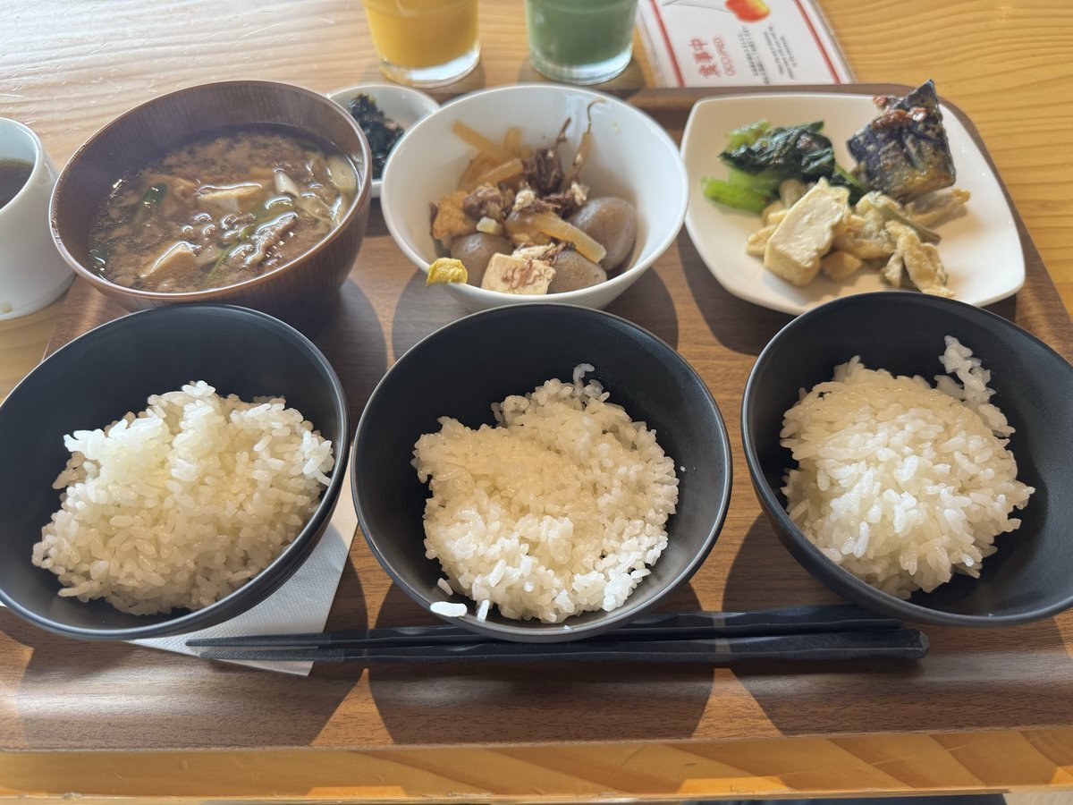 ショウナイホテルスイデンテラスさんの朝食をご査収ください🍚 左から庄内産はえぬき新米🍚つや姫🍚雪若丸の食べ比べでございます🤤 さらに3種のお米をブレンドしたカレー🍛 日替わりの芋煮は本日は内陸風の牛肉仕様🤤美味しい山形✨ pic.x.com/3j80G9l7tL