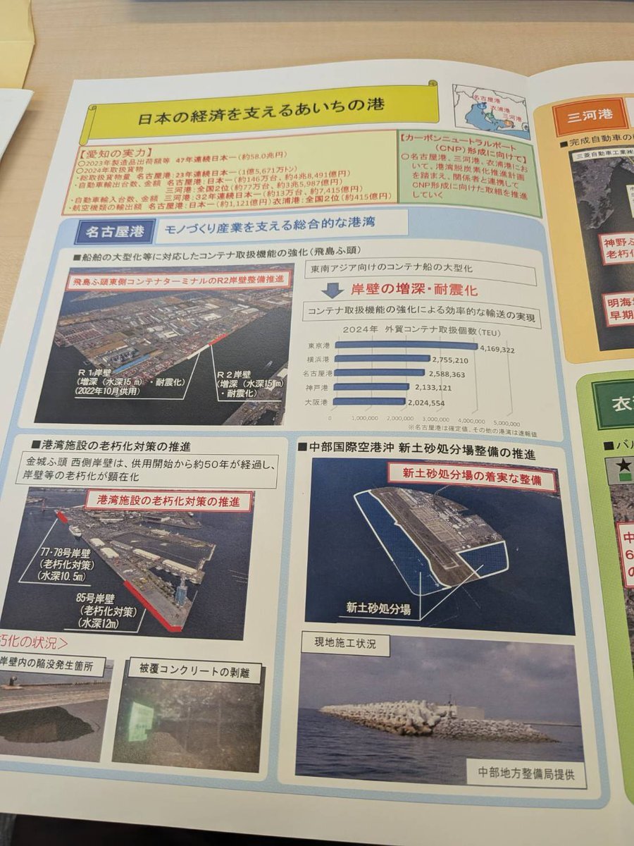 東海地区港湾協議会懇談会に出席致しました。 日本のものづくりを支える愛知の港は、名古屋港(コンテナ)、三河港(自動車輸出日本一)、衣浦港(エネルギー拠点)など、経済に不可欠です。 老朽化対策や災害時の物流維持のため、港湾の耐震化・強靱化は喫緊の課題。 pic.x.com/xlj2NTwjKF