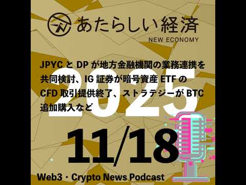 youtube.com/watch?v=Mjpv2E… 【11/18話題】JPYCとDPが地方金融機関の業務連携を共同検討、IG証券が暗号資産ETFのCFD取引提供終了、ストラテジーがBTC追加購入など(音声ニュース) WebX STUDIO【仮想通貨 ブロックチェーン総合番組】 公式チャンネル #AI要約 #AIまとめ