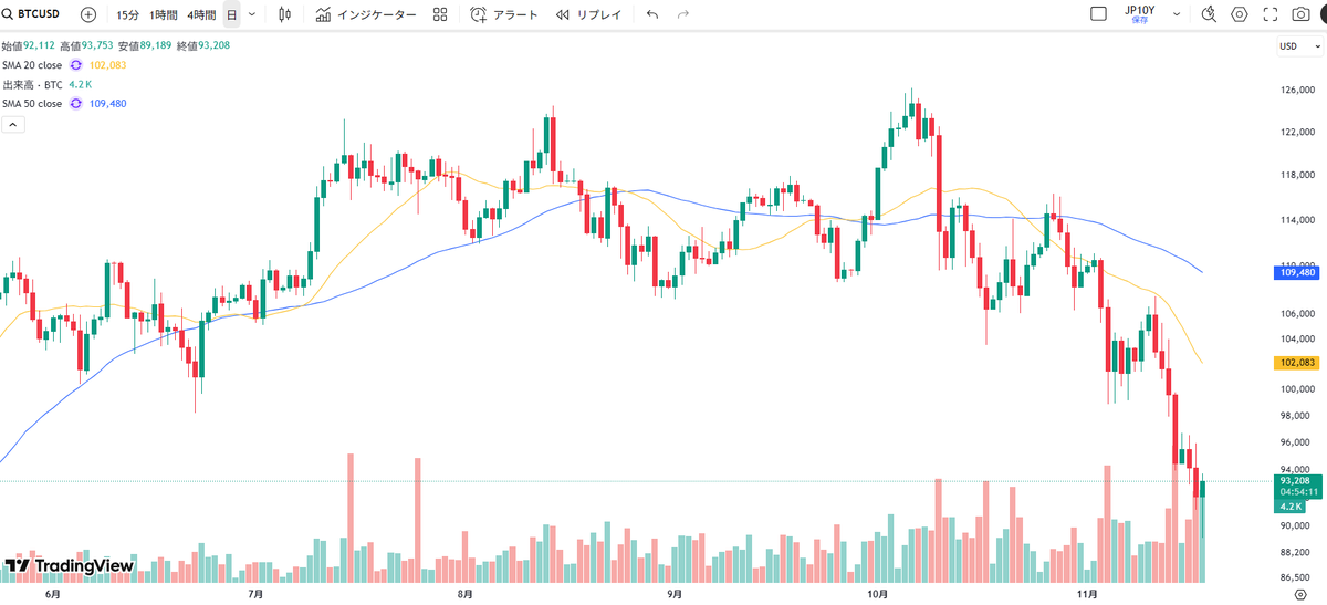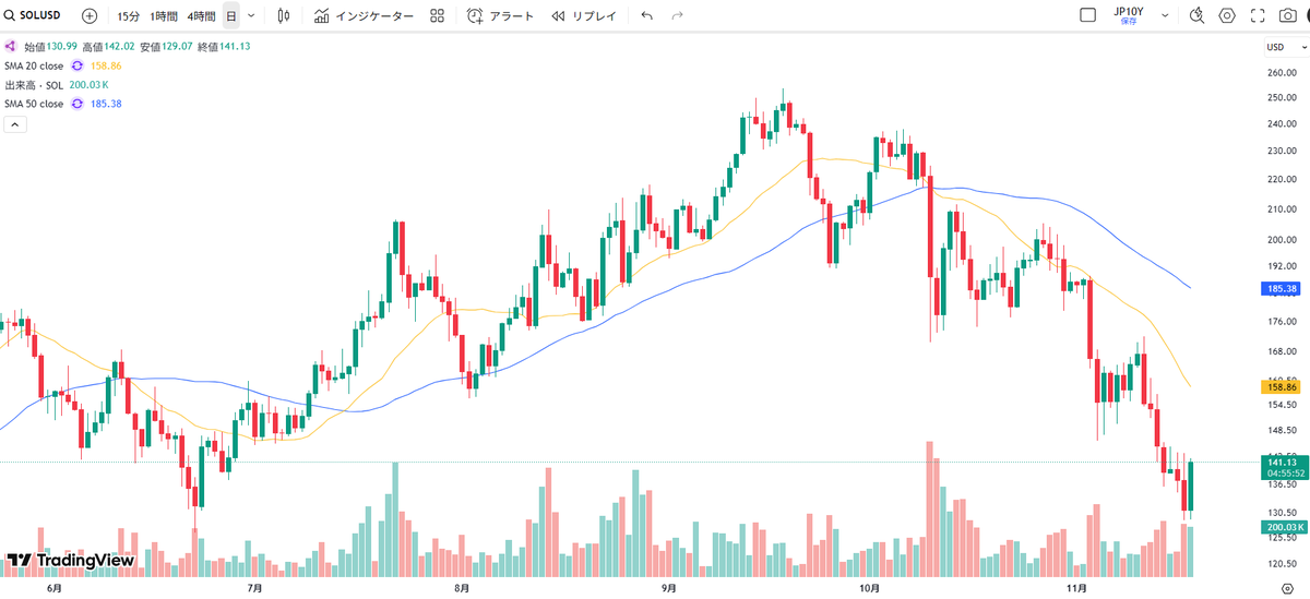ビットコインより先に、実用性が評価されているソラナやリップルが買われていましたが、本日はBTCも出来高を伴って下ヒゲ陽線を形成しています。 BTCはリスク資産の先行指標としても機能するため、 世界の株価指数が節目で反発している状況も踏まえると、本日は株式市場も更なる下落は小さそうです。 pic.x.com/DuXwPw4ghw