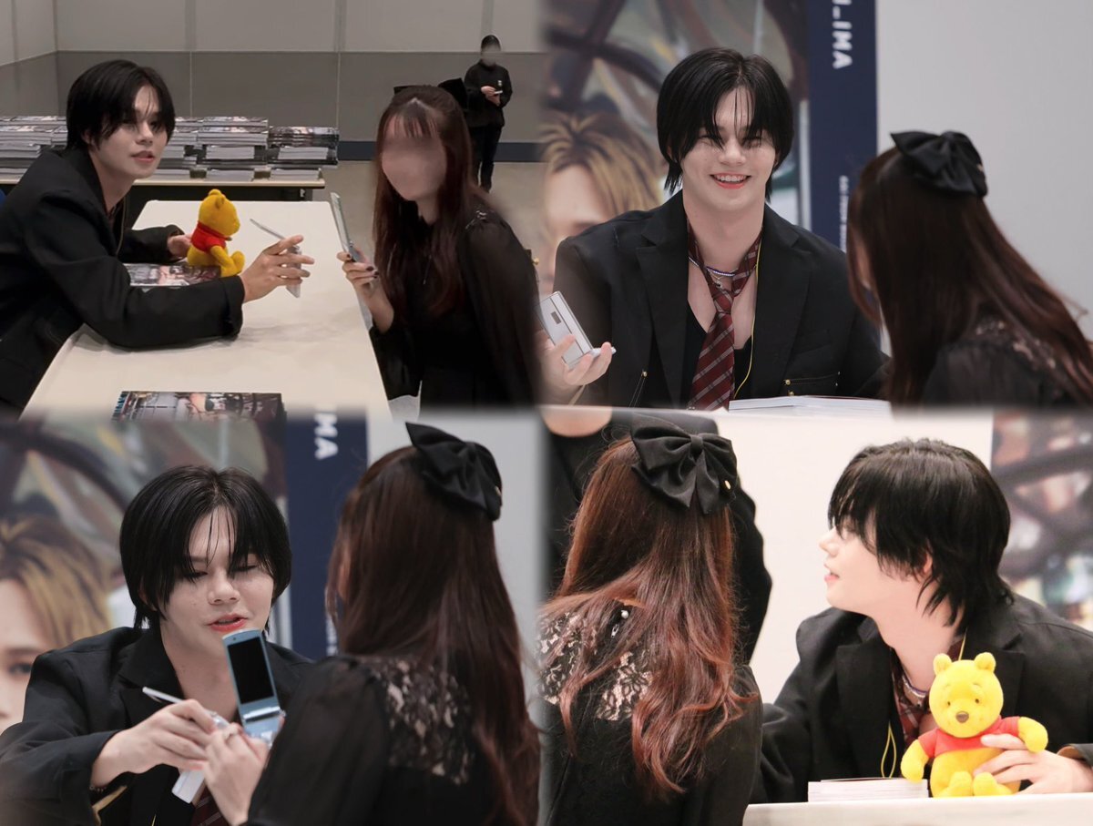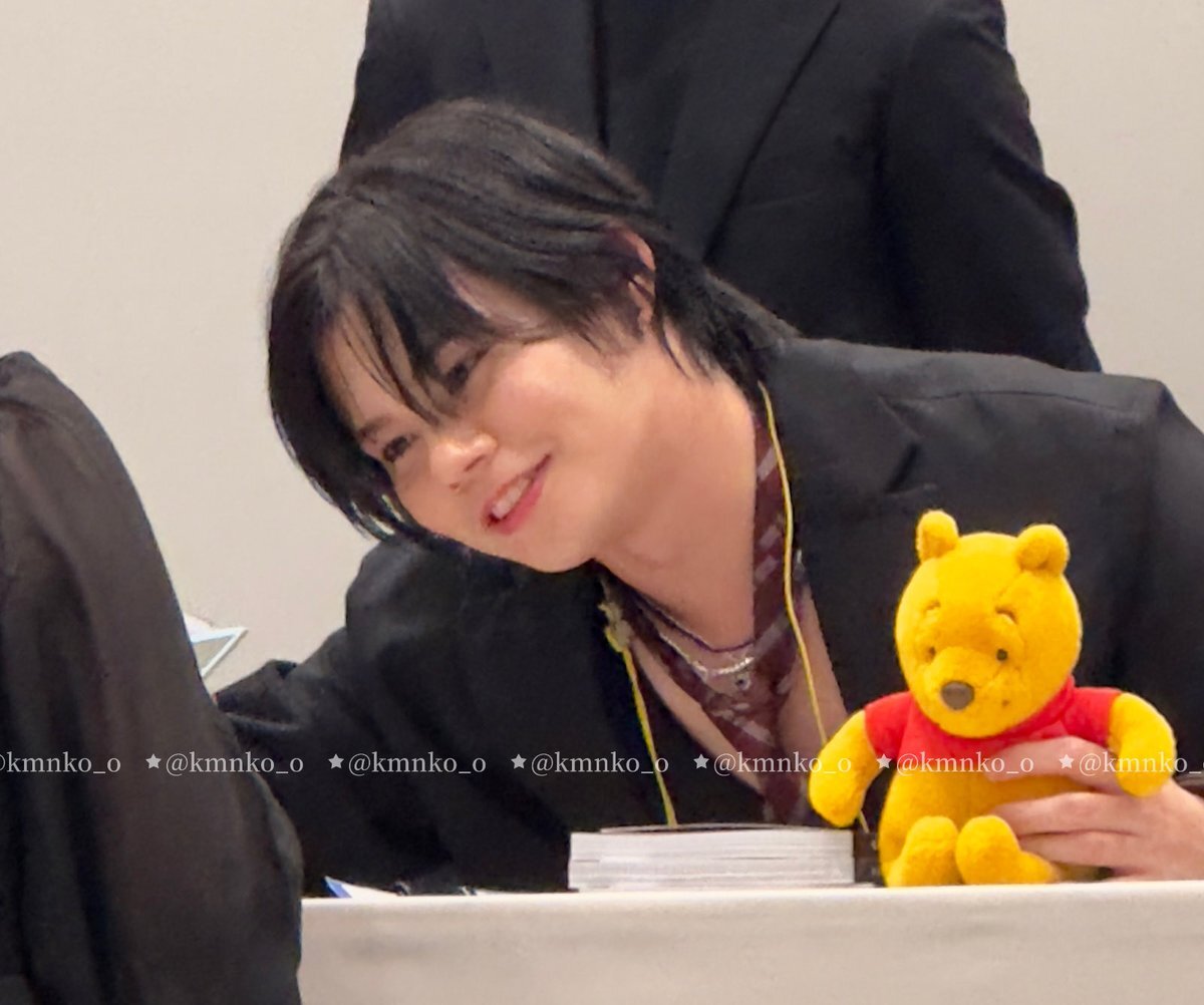 横浜 10/11 6部(17:00~) プーさんを置いて、ネクタイとイヤホンをしてガラケーで赤外線通信をしてくれたカイくんの写真や動画がありましたら是非いただきたいです😭💫 こちらも整番1桁後半~10番台中盤くらいまで以外ずっと動画を回していたので、お声がけいただければお送りします! #カイのいま pic.x.com/N8kFwHDgG5