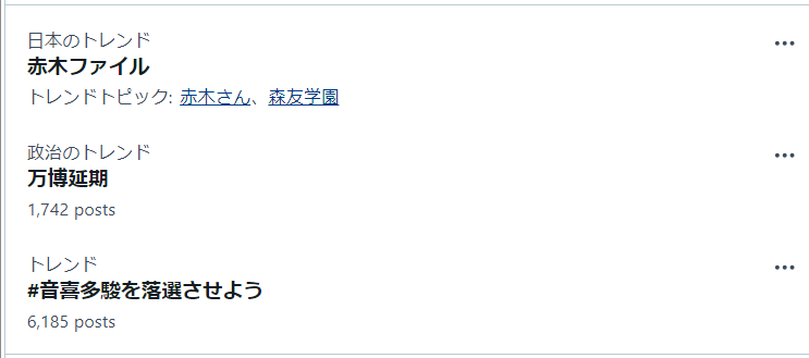 何とも素晴らしいトレンドだらけ😊 佐川宣寿は許さない。 赤木さんを忘れない。 万博は不必要。 音喜多駿は口だけのクズ。 #仰天ニュース #赤木ファイル #赤木さんを忘れない #万博中止 #音喜多駿落選運動 pic.x.com/KSdEn2uvws